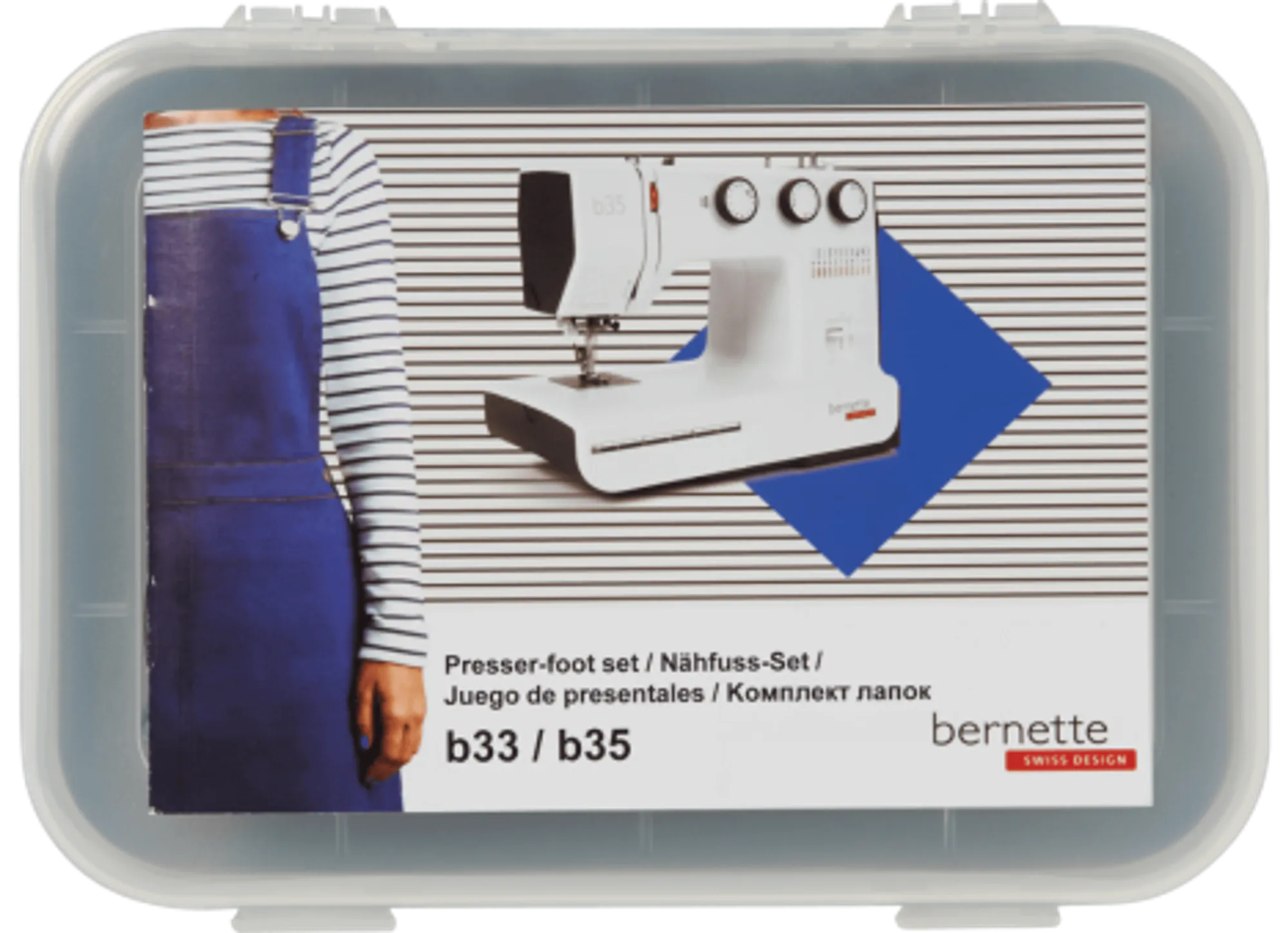 Looking for additional accessory feet for your bernette sewing machine? Sewing in an invisible zipper foot, decorate with yarns or gather fabric easily are only a few examples, which you can do with the feet in this set.