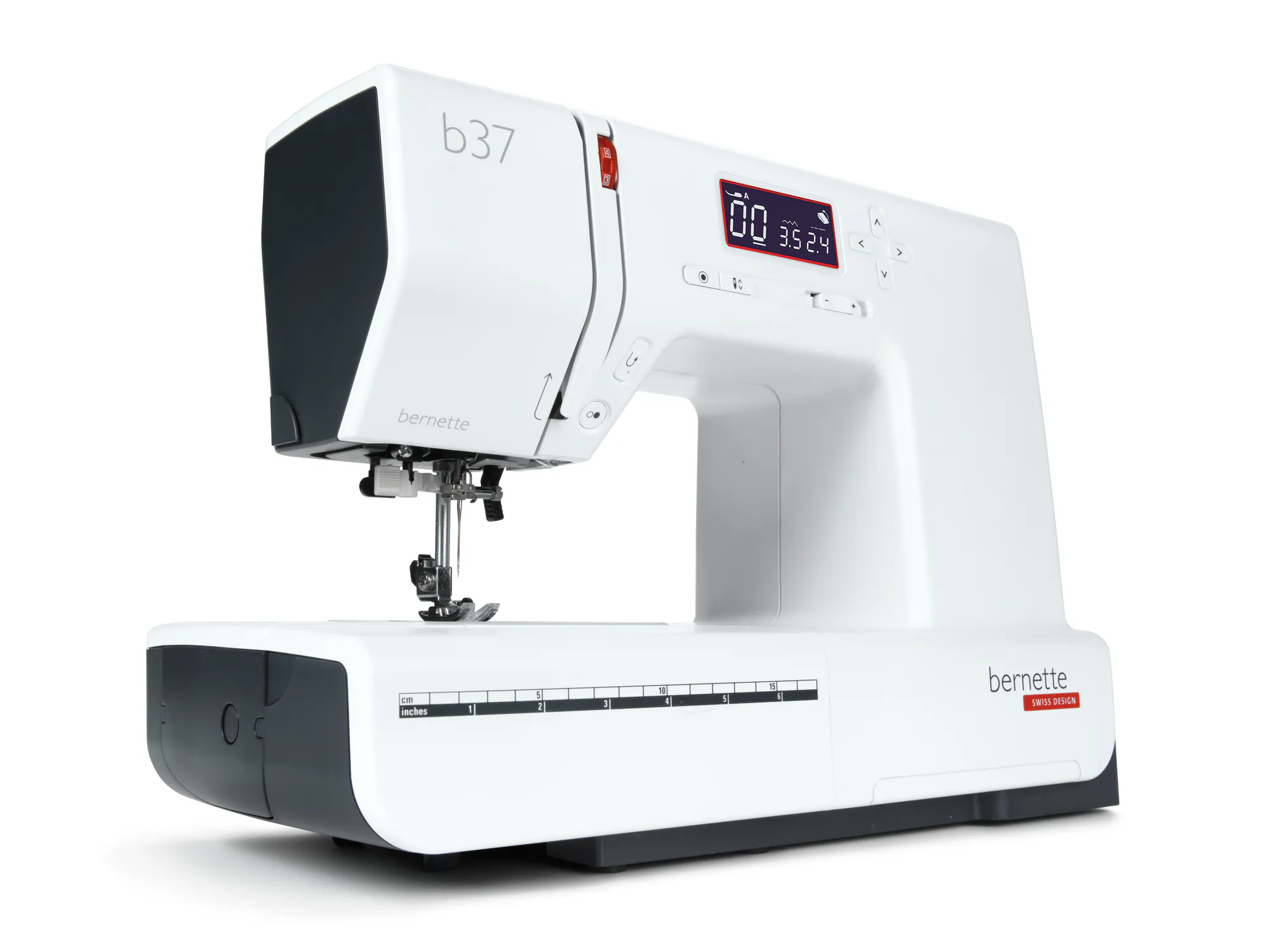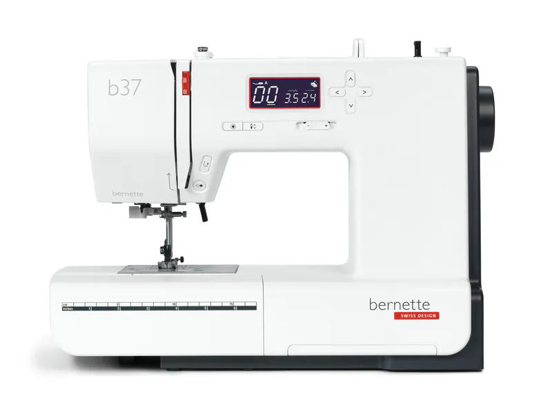 The bernette 37 is a compact computerized model with simple operation and robust construction. It has many functions, such as the practical start/stop function that allows you to sew without using the foot pedal. You can also use the needle stop up/down function to decide whether the needle should stop in the fabric or up above it. This is a particular advantage when you want to sew corners and turn the fabric around the needle. With the bernette 37 you can also adjust the sewing speed to suit your individual requirements and the type of material. The bright LED light helps ensure that your work surface is always well lit. The bernette 37 comes with 5 snap-on presser feet.