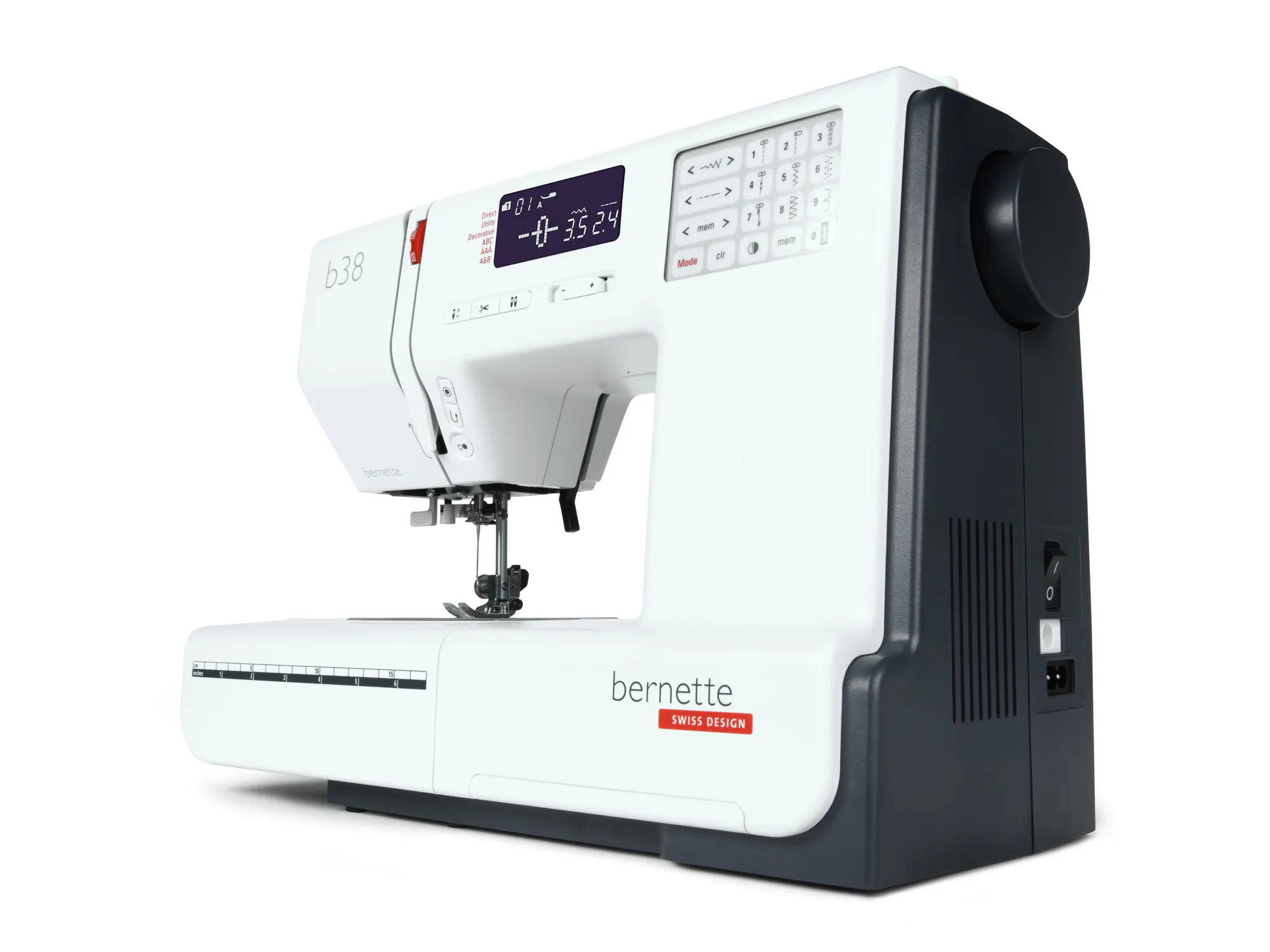 The bernette 38 is the top model in the bernette 30 series. This computerised sewing machine offers a wide range of functions at an affordable price. It offers 394 different stitches, including the stretch stitch for elastic fabrics. This means you can create fantastic T-shirts from jersey fabric, for example. The bernette 38 also has eight different 1-step buttonholes and three alphabets. The bernette 38 has a useful speed regulator, which can be adjusted on the display. As the top model, this impressive sewing machine also has a bright LED sewing light, a threader and both an automatic and a manual thread cutter.