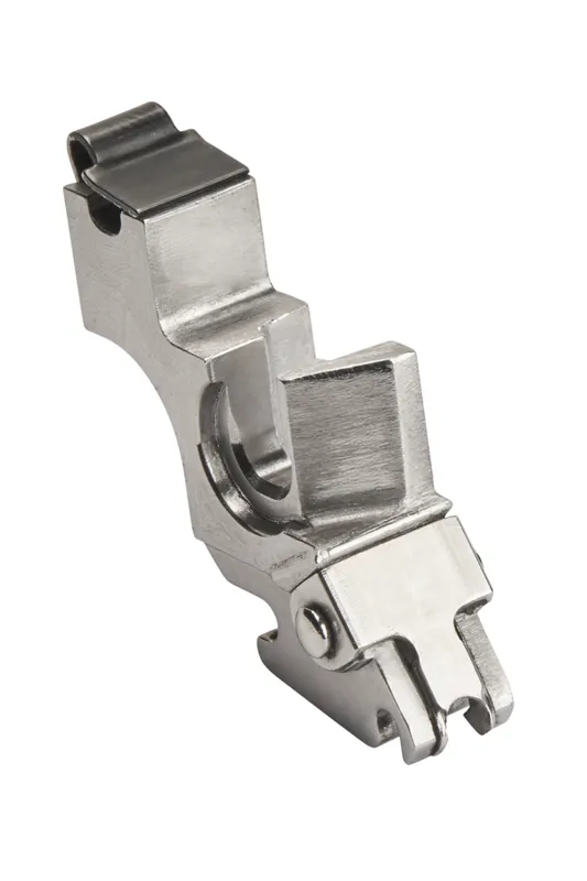 The universal presser foot holder features an adapted shaft which is fitted in place of the shaft for the Dual Feed. For our bernette machines with Dual Feed, such as the b77 and b79, it is now possible to fit even more sewing feet than those that are already available. Creative touches such as decorative hemming and topstitching can now be achieved effortlessly with presser feet such as the adjustable binder attachment or the edge stitch foot. This is how the universal sewing foot holder enables more diverse design options and helps to implement the most exciting ideas.