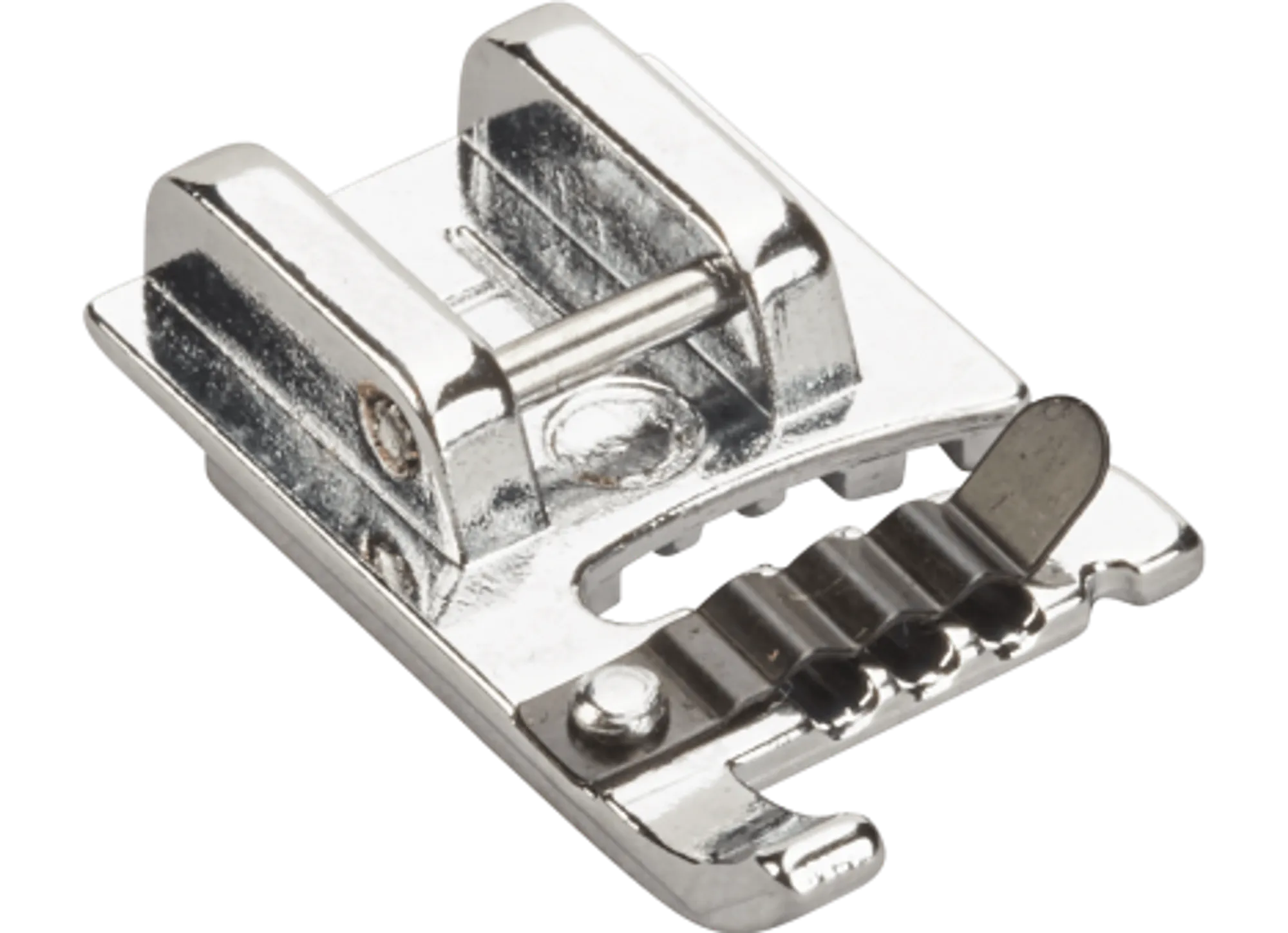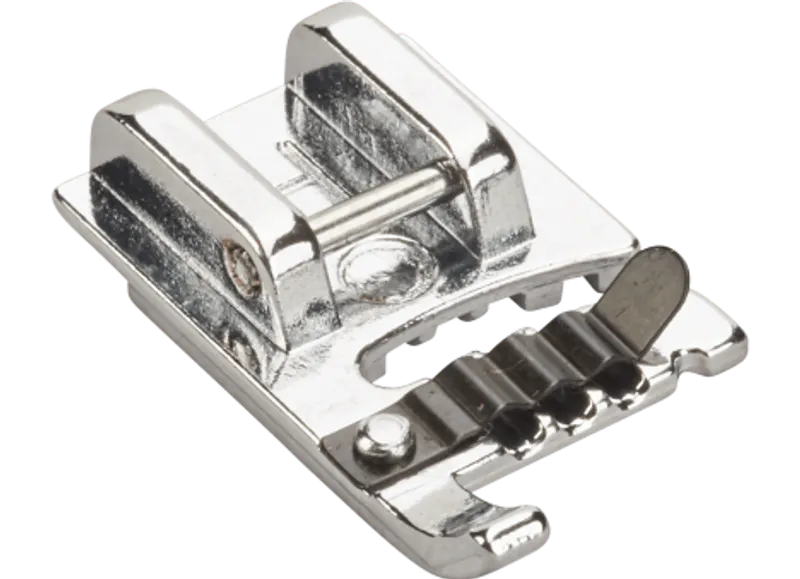 The Cording foot allows sewing on thin cords or strings. As the bottom of the foot sole provides several grooves, more than one sting can be sewn on in one step.