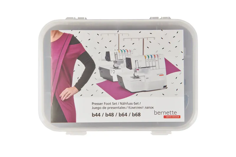 This set for the bernette overlockers and combo machines contains 6 practical presser feet which are best-suited for decorative overlock seams