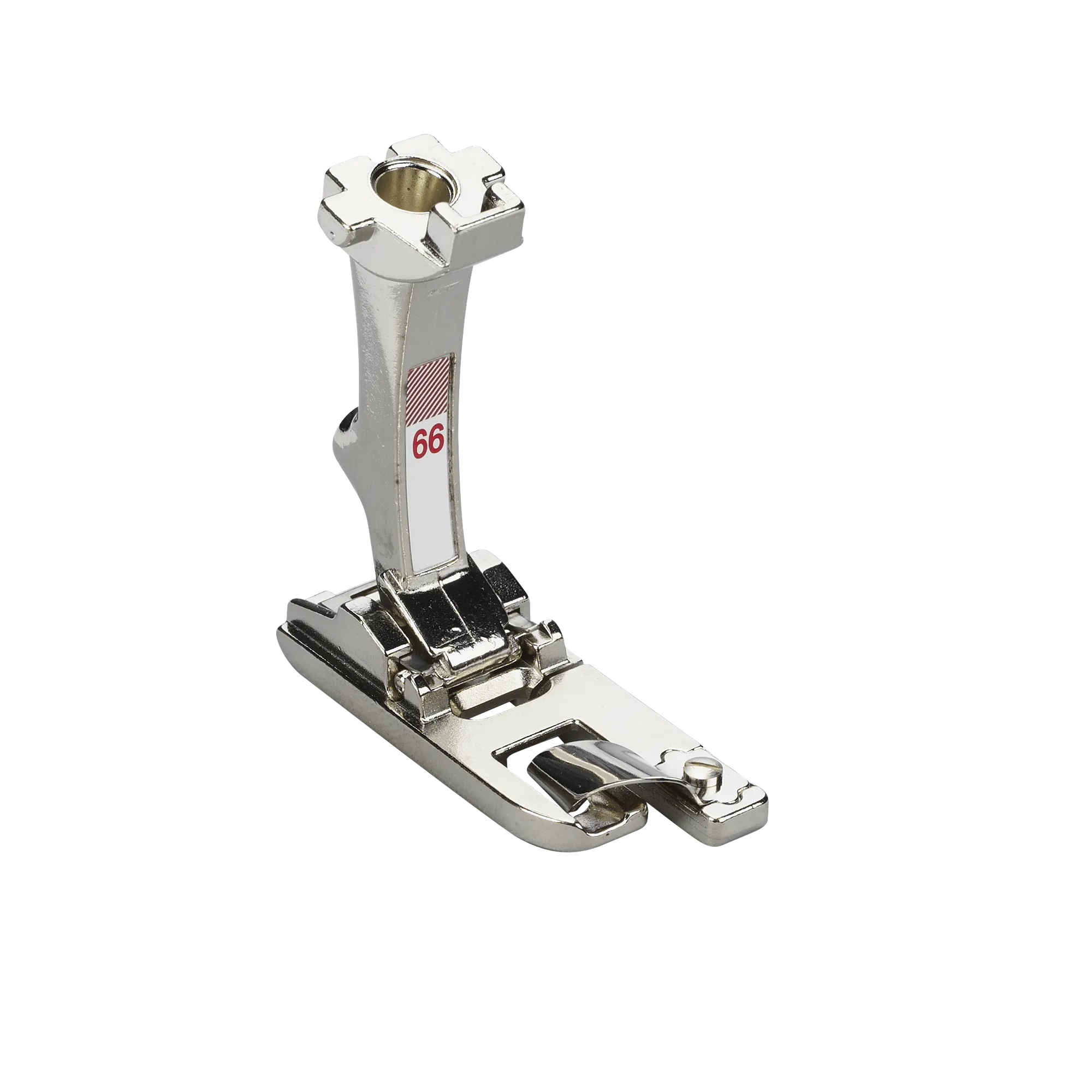 The Zigzag hemmer sews beautifully decorated non-fraying hems in a single operation. The fabric is folded over twice and sewn down with a zigzag or decorative stitch. Foot #66 is ideal for medium-weight fabrics.