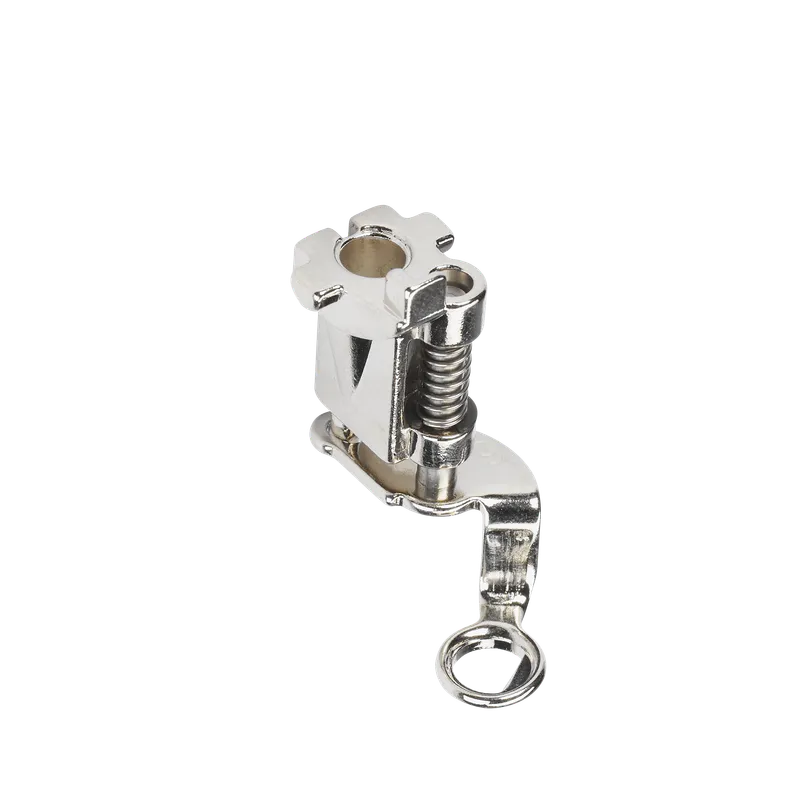 The special shape of this multi-purpose foot makes it particularly suitable for free-motion embroidery, contour quilting, and producing attractive lace and monograms. Small holes and tears can also be repaired using the hosiery darning hoop.