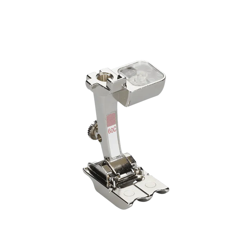 For simultaneously sewing on two parallel cords with a diameter of 7-8mm. The versatile double cord foot is also ideal for sewing on piping.