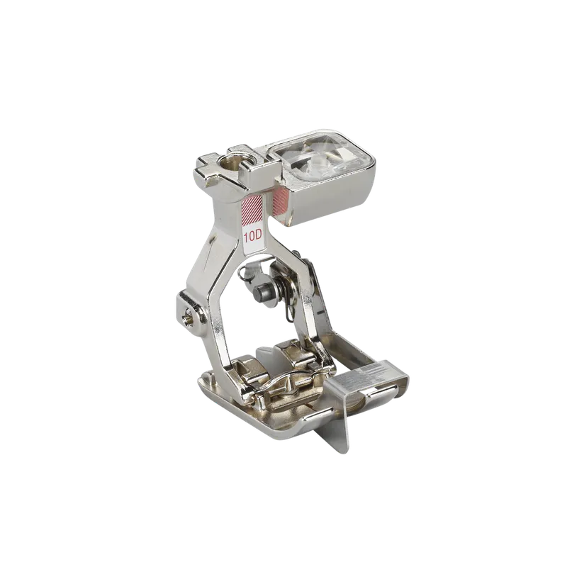 This presser foot with guide is excellent for topstitching edges, hems and pleats. It is also ideal for sewing on lace or ribbon and for reinforcing edges. The guide lets you sew perfect seams and hems running parallel to the edge.