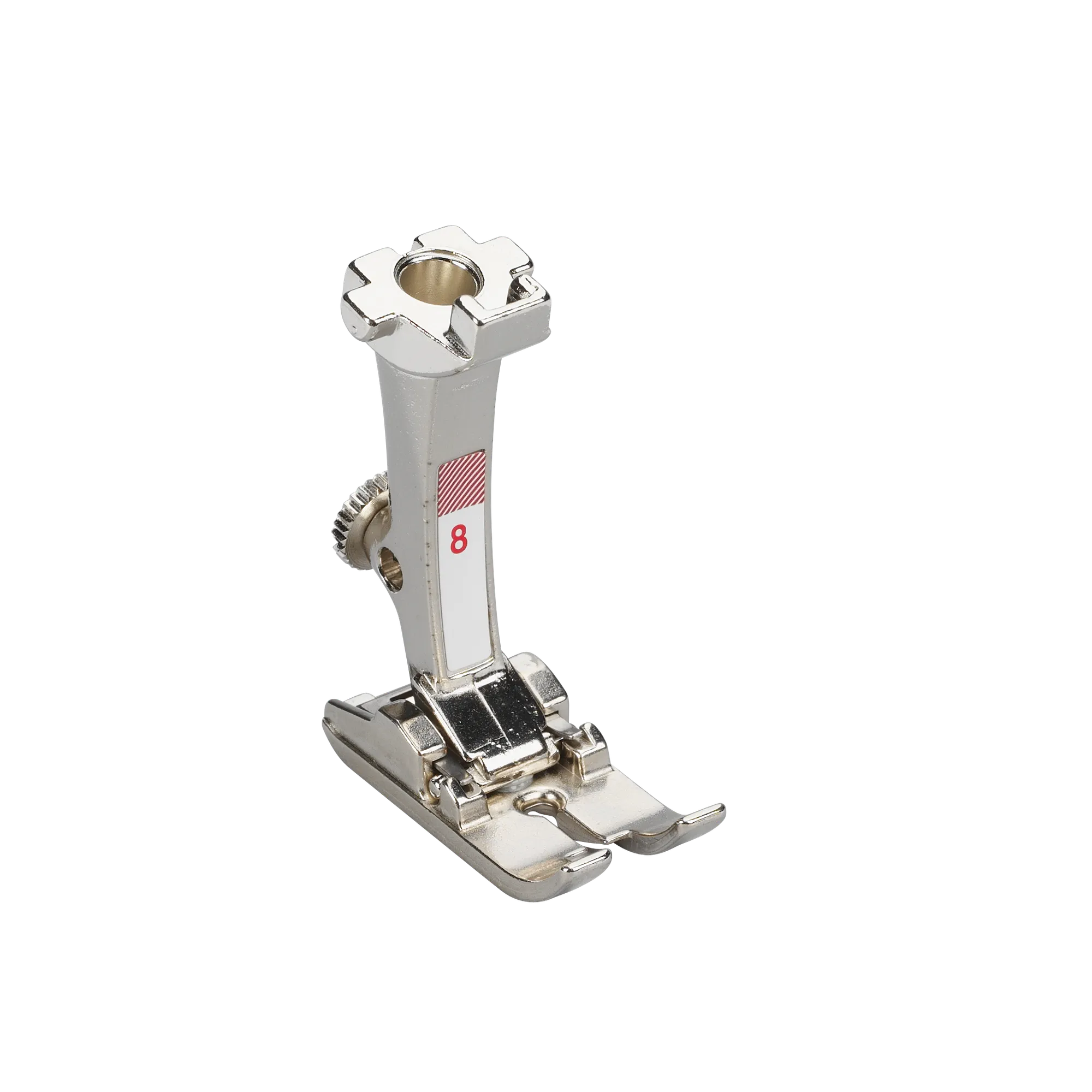 Used together with the straight-stitch needle plate, the Jeans foot is ideal for straight-stitching over thick seams and on multilayer or densely woven materials such as denim, canvas or travel bags.
