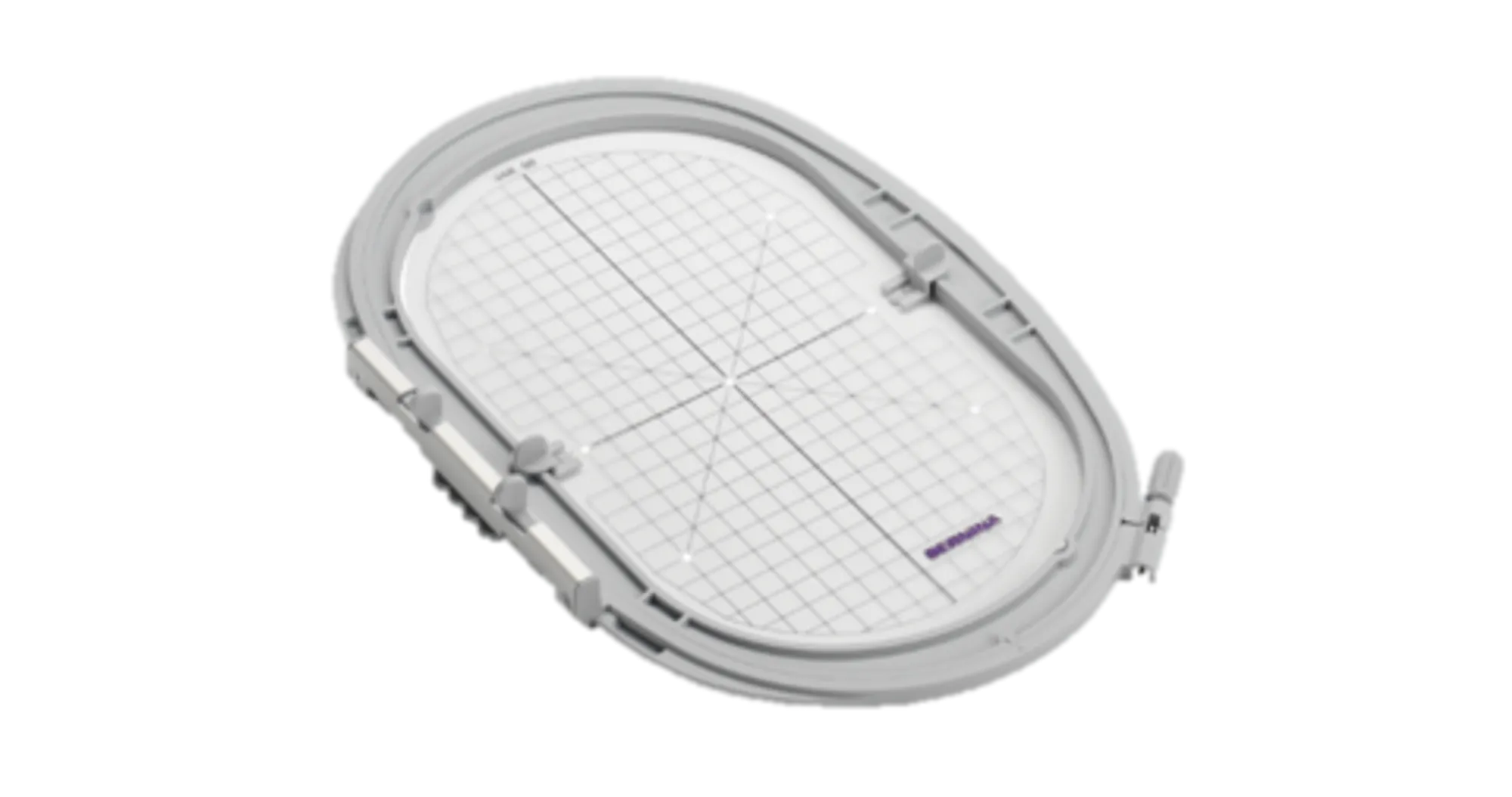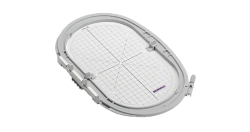 The large, oval embroidery hoop (max. embroidery area 145 x 255 mm) enables the production of large embroidery patterns. It is also ideal for combining multiple small motifs. The template that is included facilitates the exact alignment of the fabric on the hoop. This allows the most beautiful embroidery to be created conveniently and with ease.