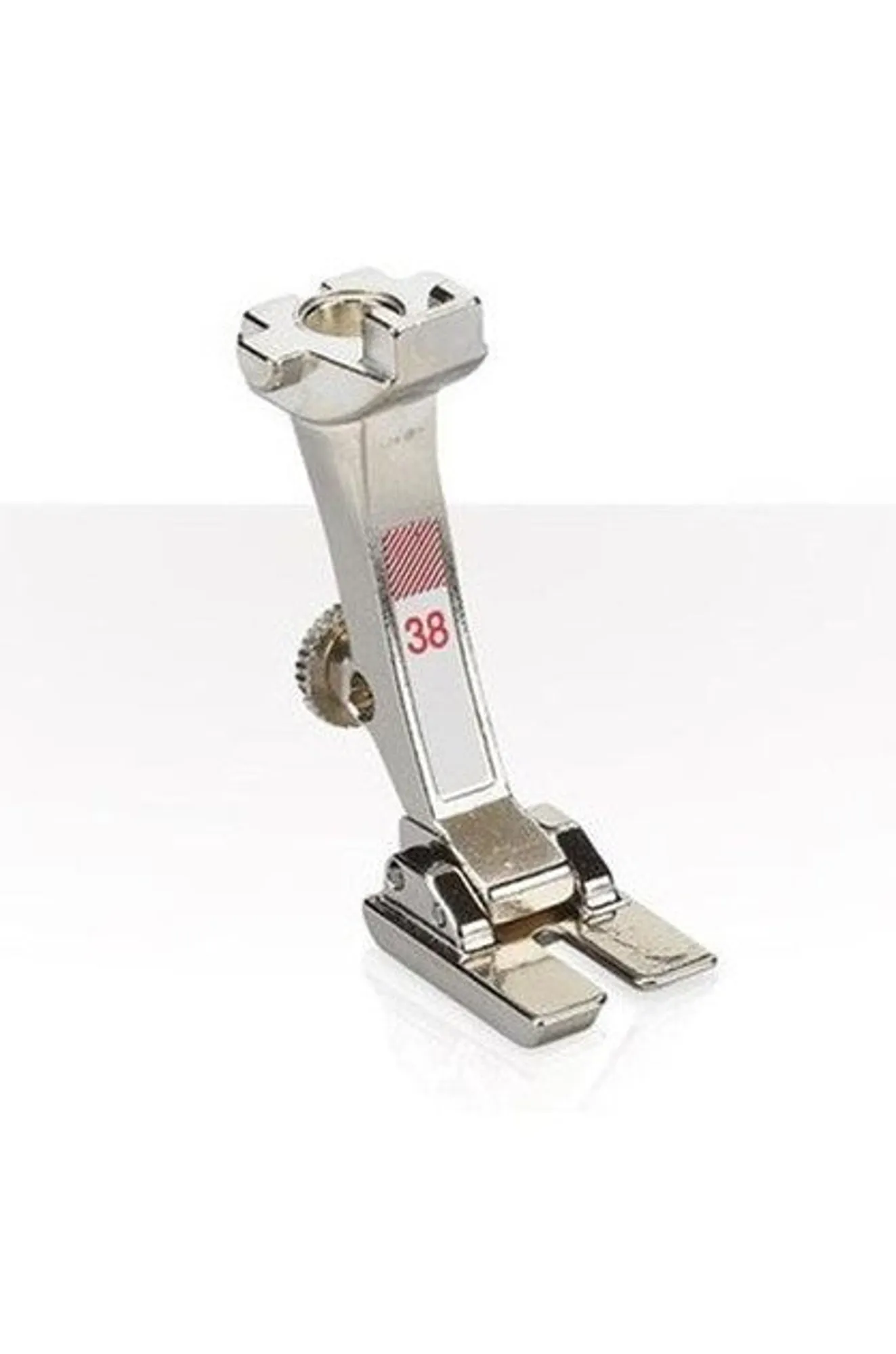 Piping Foot #38 is often also termed the “uneven foot”, owing to the different thicknesses of the two halves of its sole. Consequently, this foot is ideal for creating narrow-to-medium piping, as well as for sewing unevenly thick fabric layers.