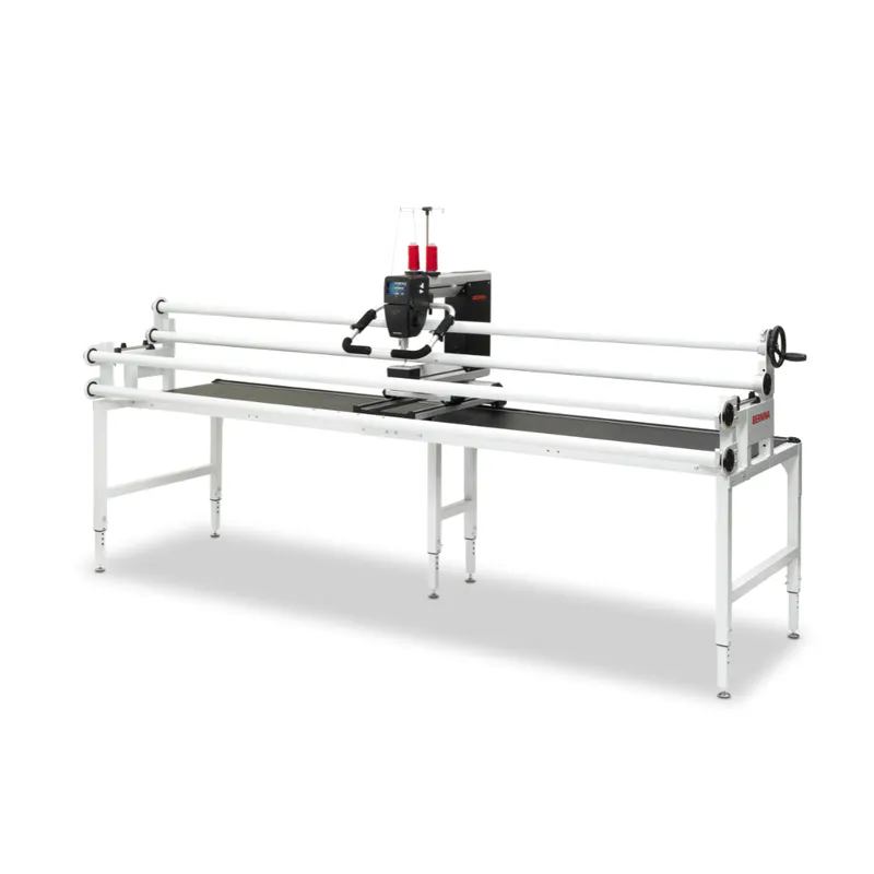 Sometimes your quilting dreams are bigger than the space you have. The BERNINA Studio Frame is a modular frame and can be mounted as small as 5 ft or to its full size of 10 ft. The 5 ft frame can be easily extended to a 10 ft with the 5-ft-extension set. The Studio Frame is spacious enough for your biggest projects and sturdy enough to handle all the performance features of the Q 20 Longarm.