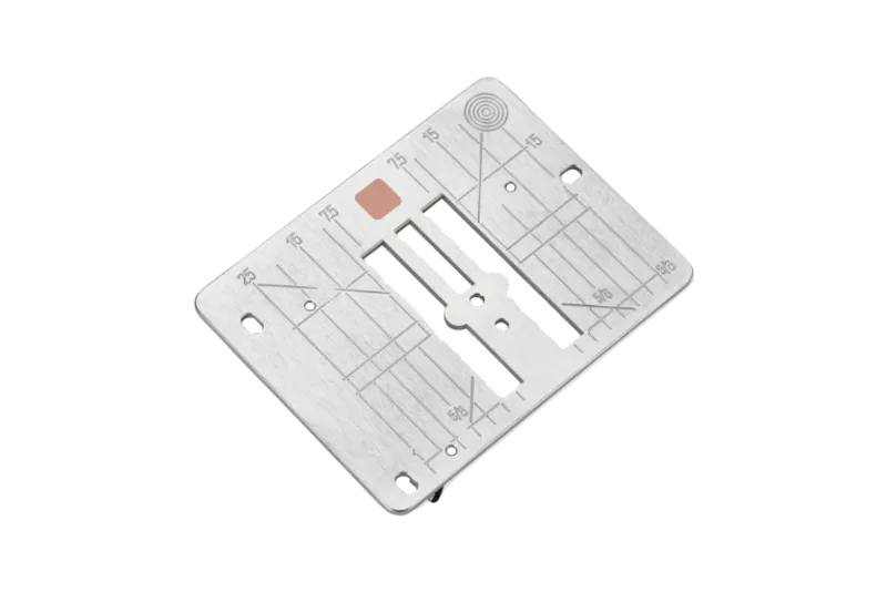 The Straight and CutWork stitch plate is colour-coded orange. It can be used for straight-stitching and embroidery, as well as for CutWork and CrystalWork projects. When straight-stitching, perfect stitch formation is achieved by using this stitch plate with a presser foot with a small opening, such as foot #8, #26, #53, #62 or #64.