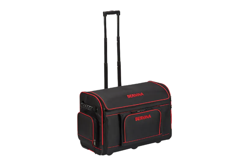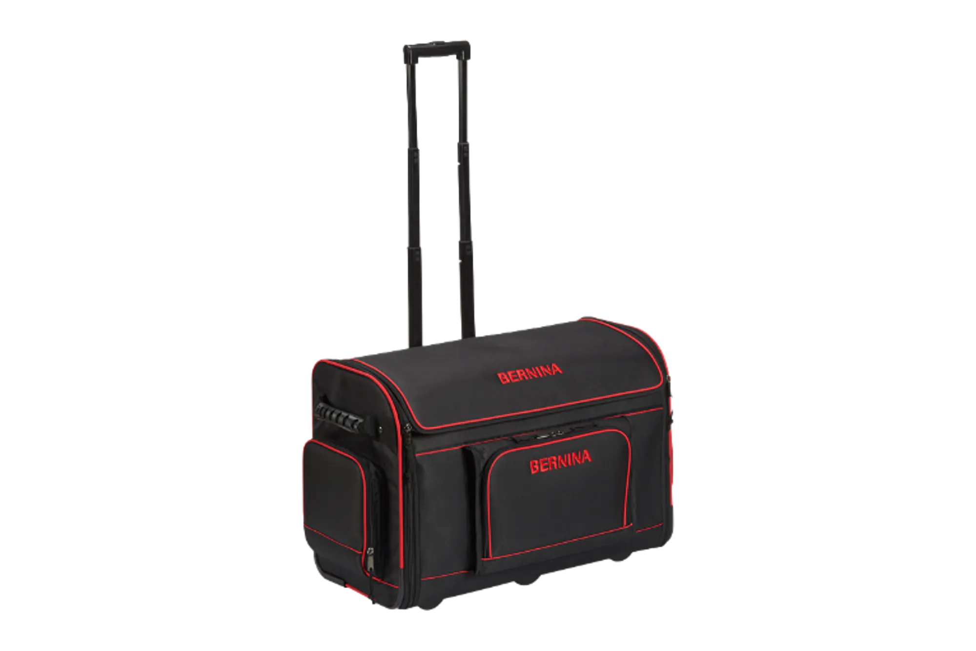 The XL trolley is designed for the BERNINA 7 and 8 Series. It is solid and lightweight. The advanced padding system and the high-quality outer material provide a thorough protection for your sewing machine. Due to the large openings, the machine can be easily loaded in the suitcase from the side or the front. In the many interior and exterior pockets the accessories can be quickly stored and accessed. Furthermore, the robust wheels, the side and the telescopic handles ensure safe handling and transport.