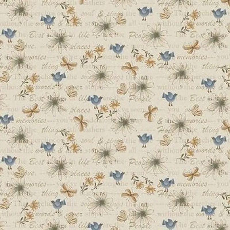 Mixed Media - Bluebird of Happiness by Janet Nesbitt, 100% Premium Cotton, Width 44"