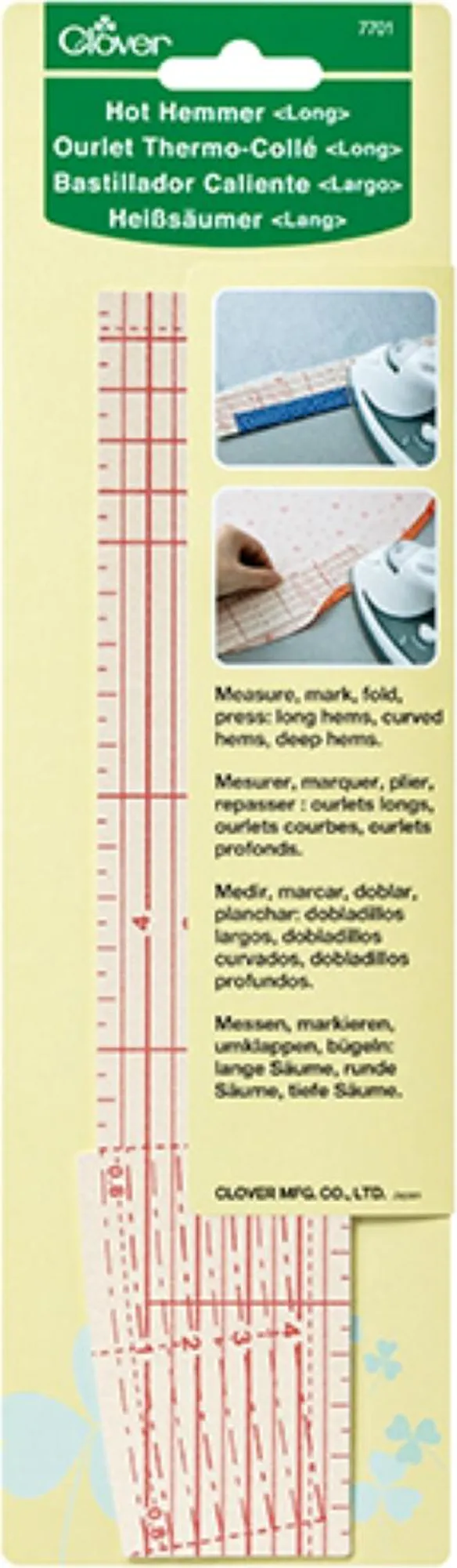 This long version of the Clover Hot Hemmer can simplify three-folding, hemming and cloth wrapping. For hemming skirts. You can fold over a curve by using two sides.