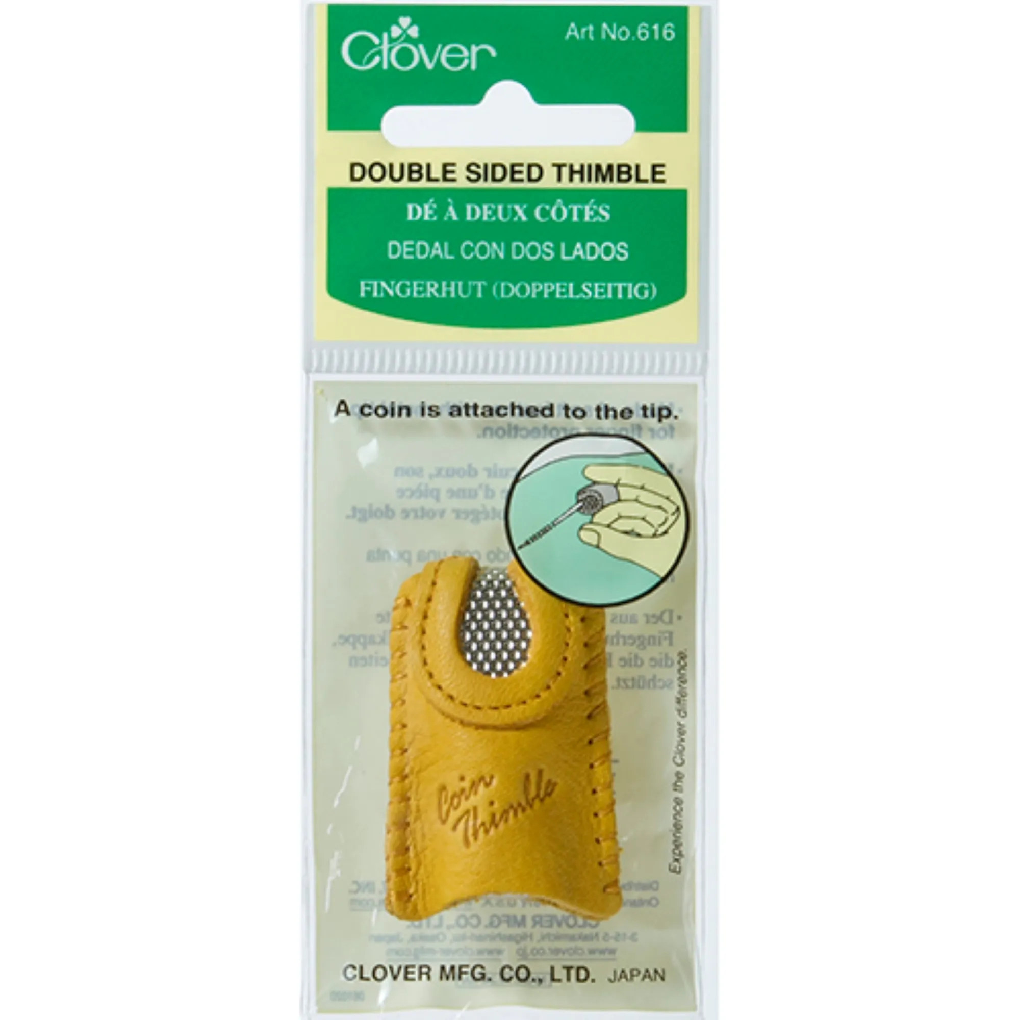 Meeting quilters' diverse needs for needle handling. Soft leather thimble with coin metal dimpled disk. Features: ?Combination of soft leather and a dimpled disk. ?Can firmly press needles through tough fabrics.