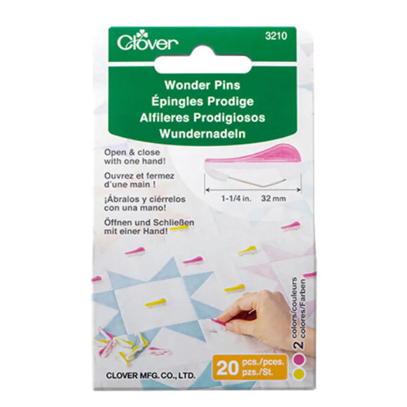 Wonder Pins are a revolutionary pin concept leveraging the benefits of both straight pins and safety pins into a single pinning tool. They are strong enough to pierce multiple layers but thin enough to go through fabric without leaving holes. They are so easy to pin through fabric and always easy to see.