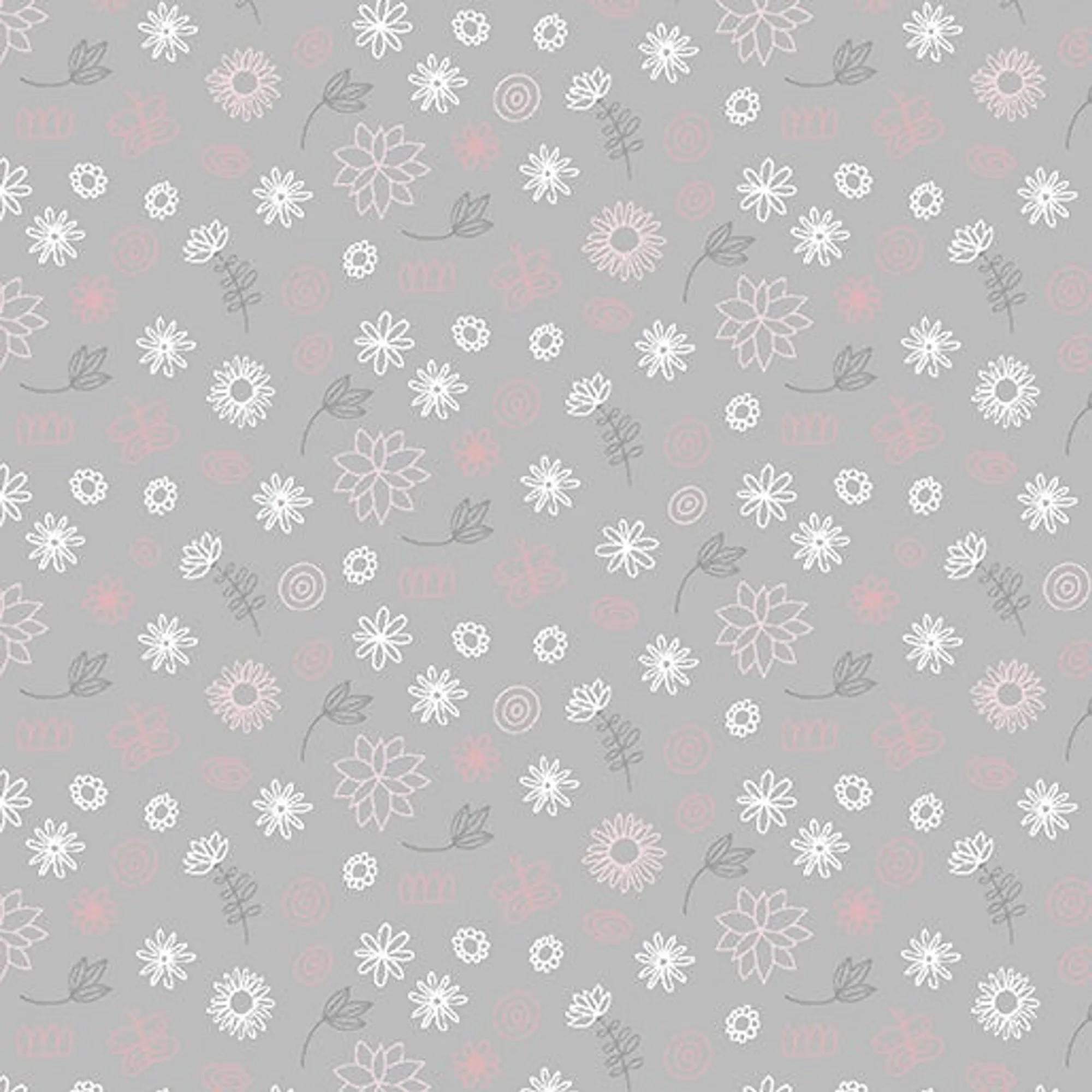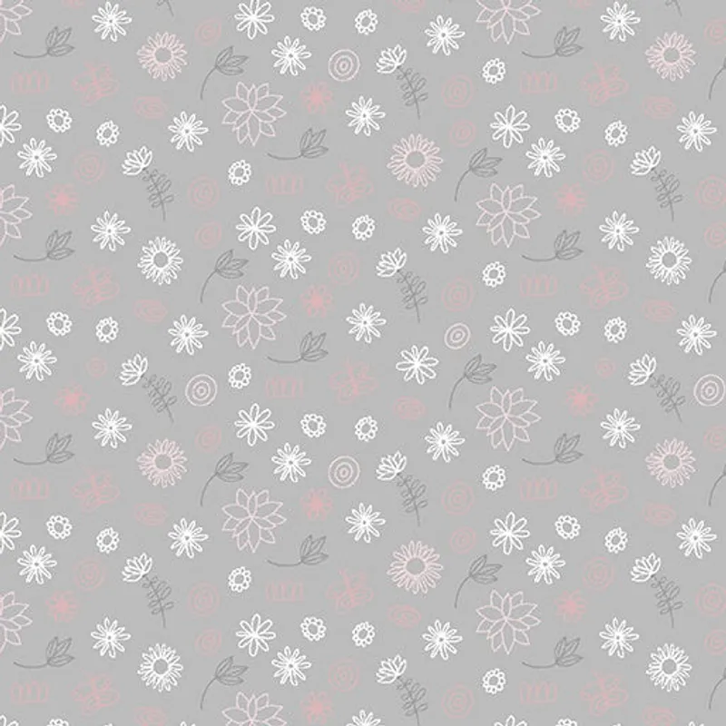 Light Grey base fabric with White, Pink and Grey mini floral
