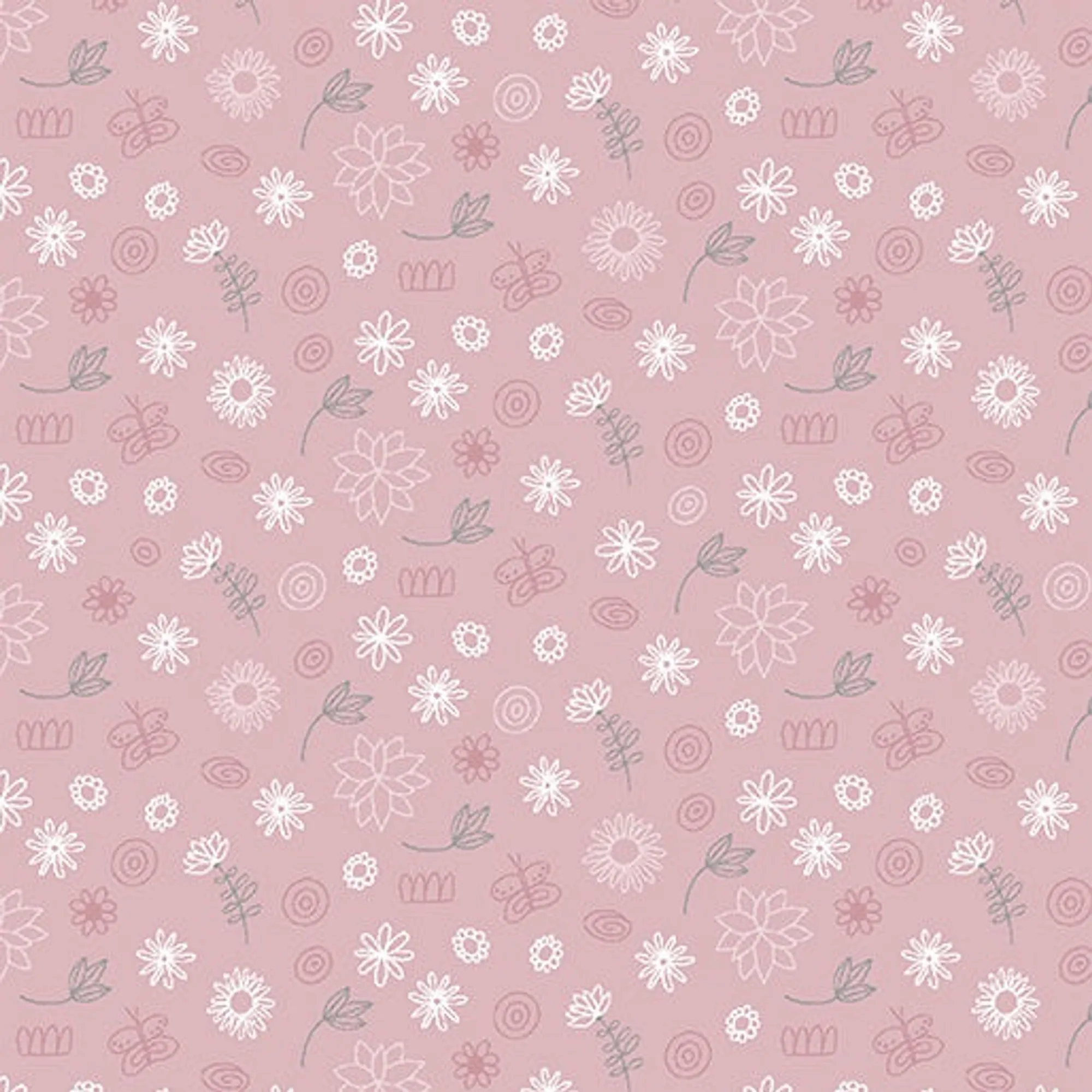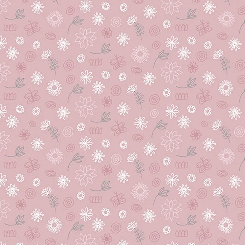 Pink base fabric with White, Grey and Darker Pink mini floral