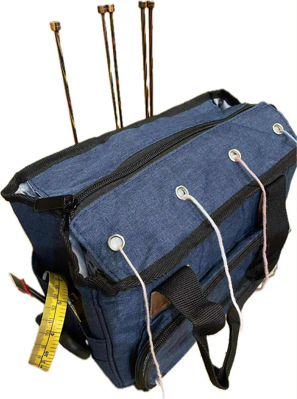 This knitting bag is great for keeping your knitting clean and safe with storage pockets as well as the eyelets at the top that you can have multiple colours of wool feeding through.