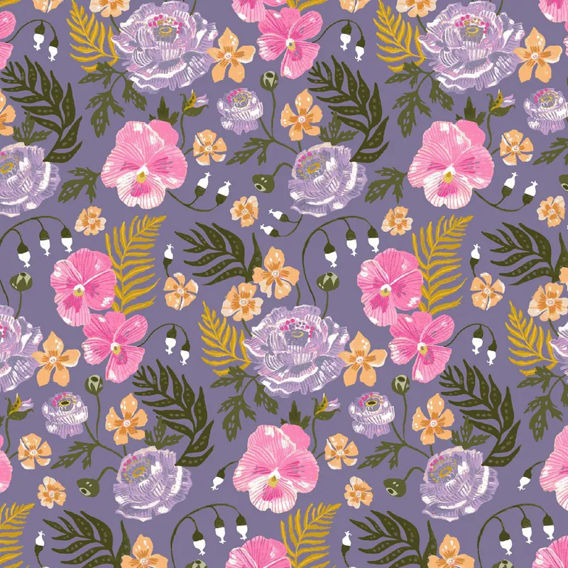 Denim fabric with multi colour vintage floral pattern