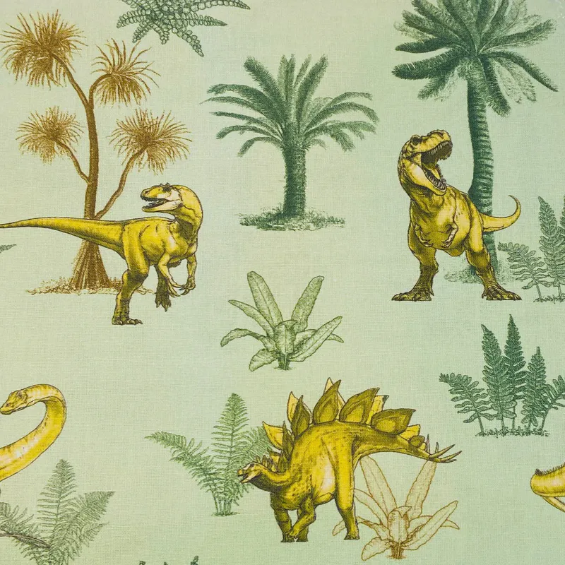 Are you ready to explore the jurassic age with this cool collection from The Natural History Museum? Step into the world of the dinosaurs and see all your favourite species roaming as they would have. This fun foliage print features the dinos strolling around the pre-historic vegetation, snacking and warning each other off their dinner...