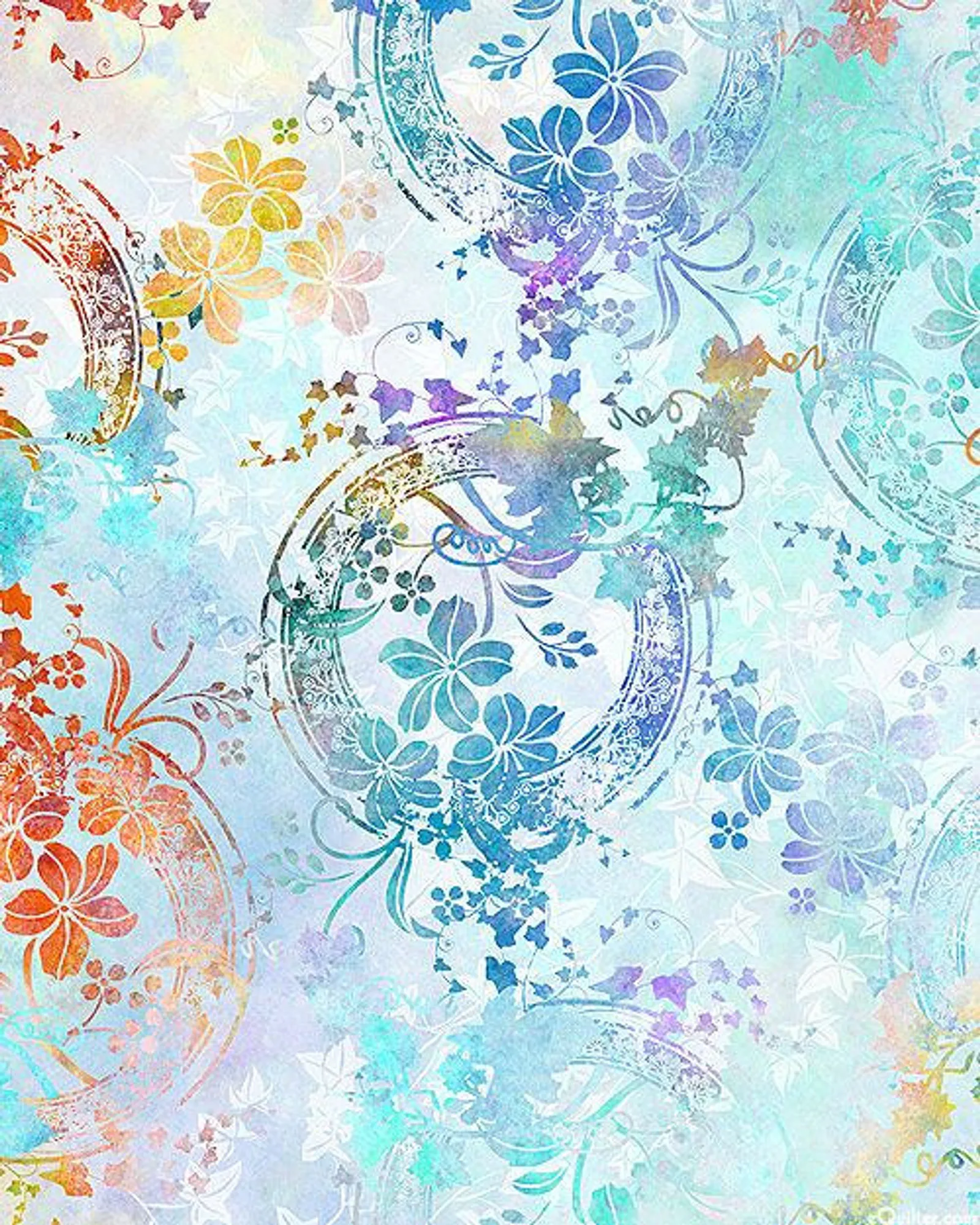 Aqua base fabric with multi colour vintage floral pattern