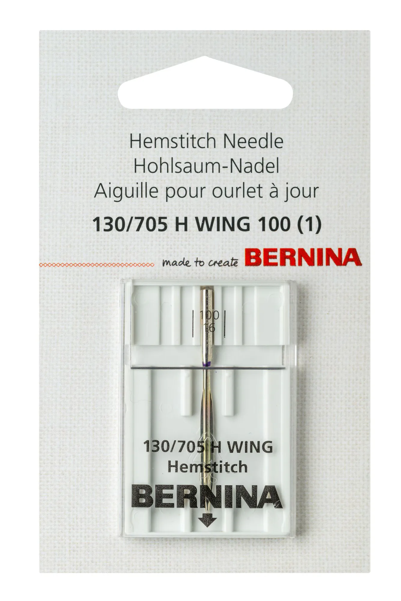 A hemstitch needle (also called a wing needle) is a special type of sewing machine needle used to create decorative heirloom stitches or hemstitching - the kind you often see on fine linens, christening gowns, or delicate blouses.