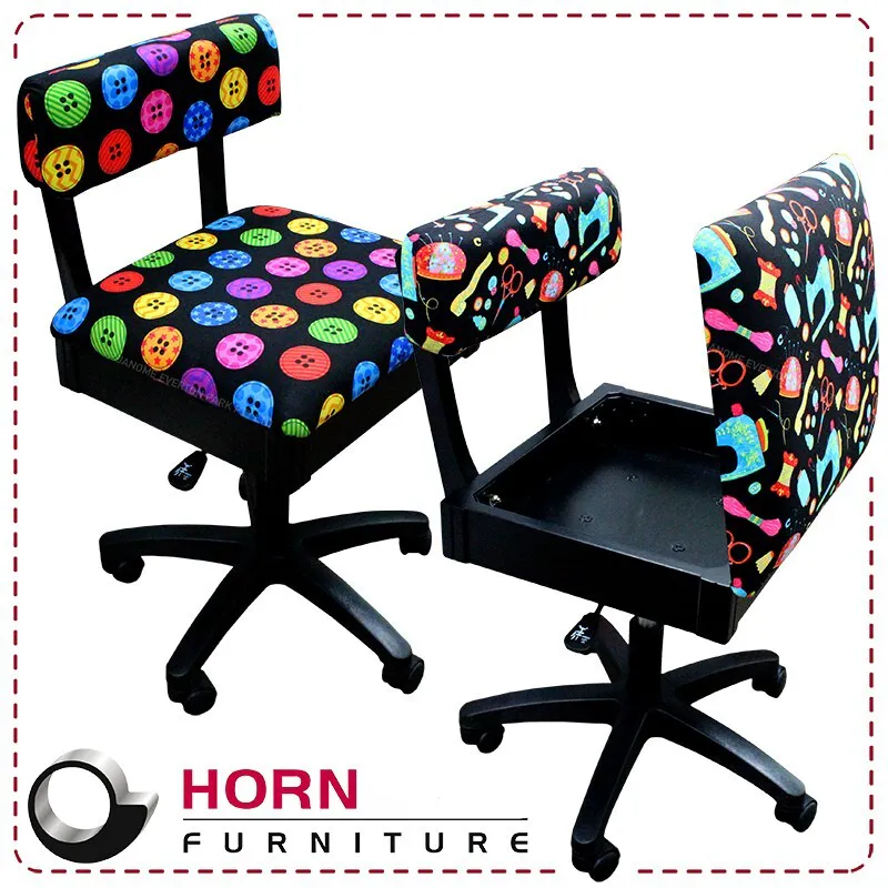 The plush cushion gives the ultimate comfort for those long sewing hours, with the same outstanding lumbar support as our Horn Sewing Chairs.