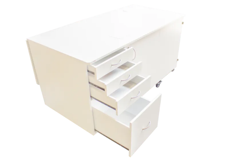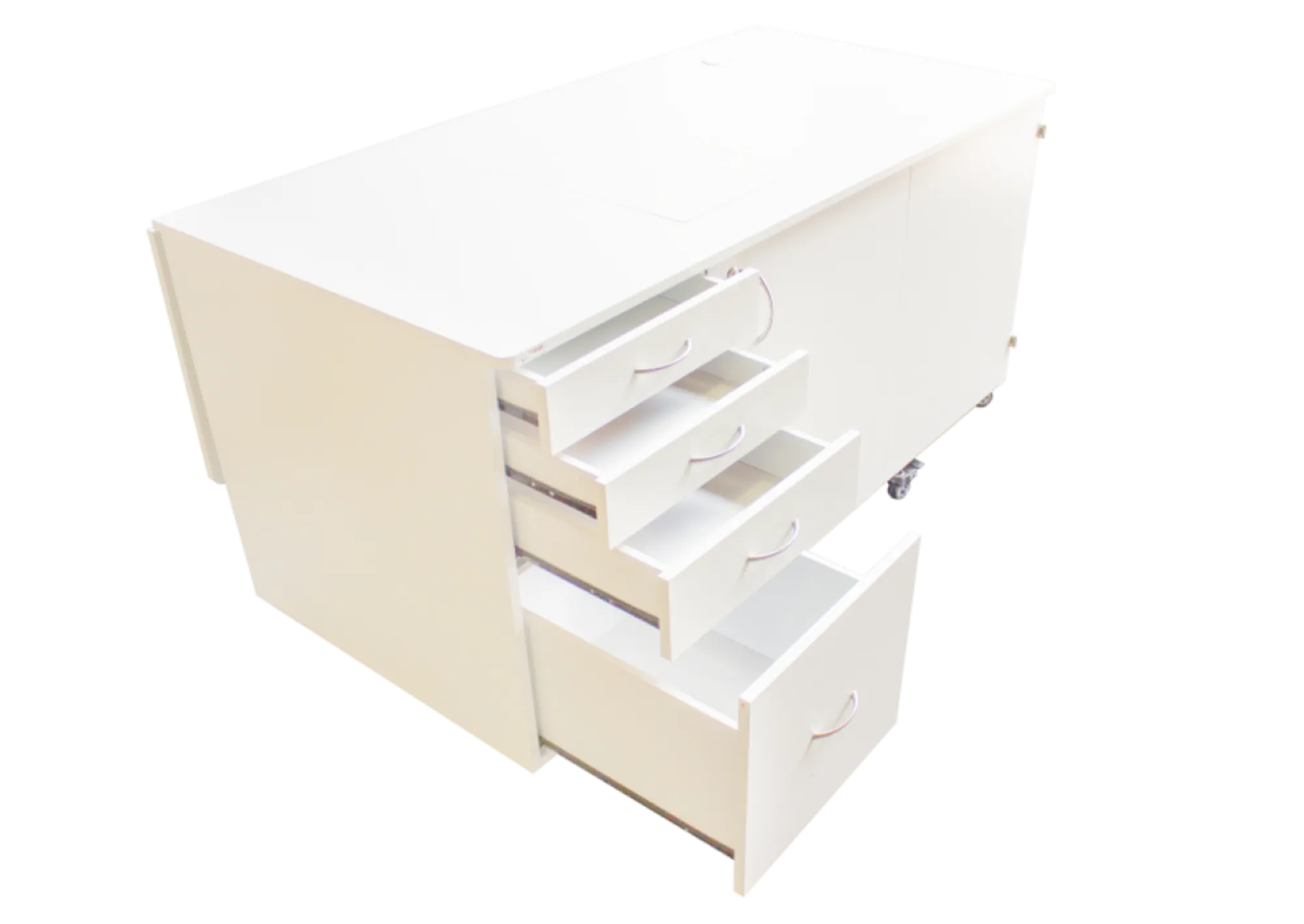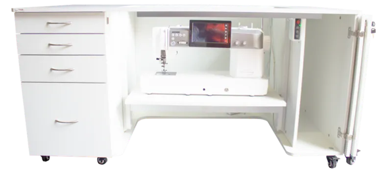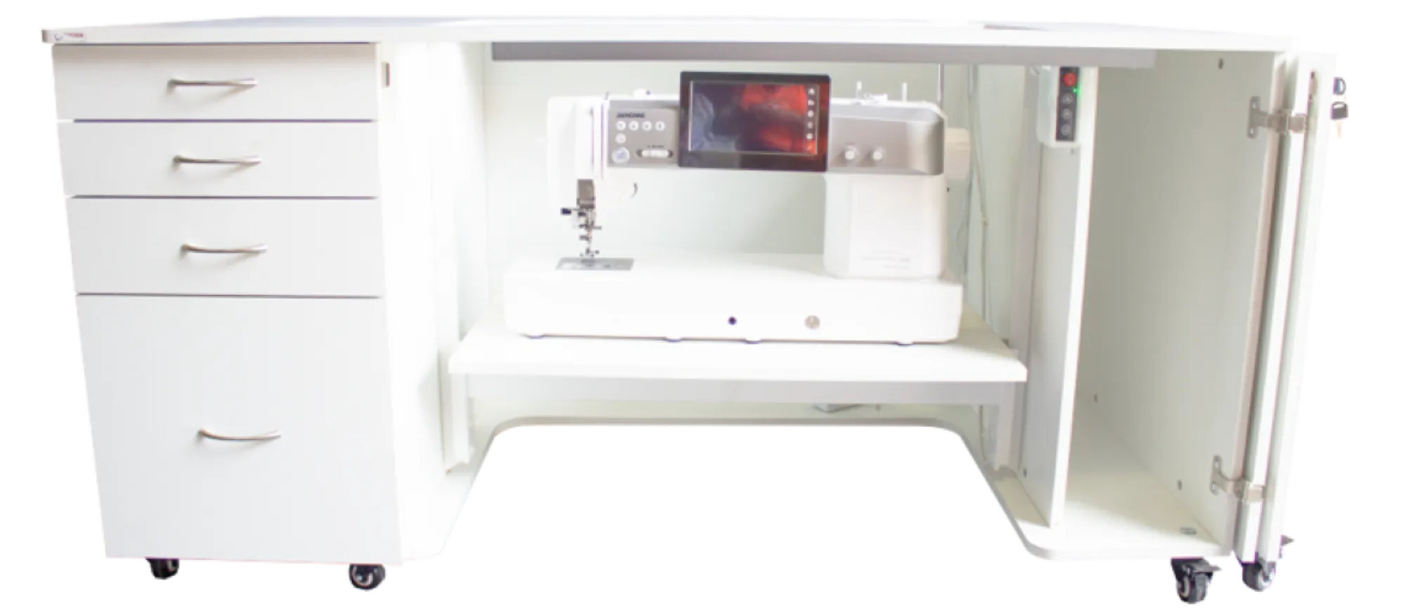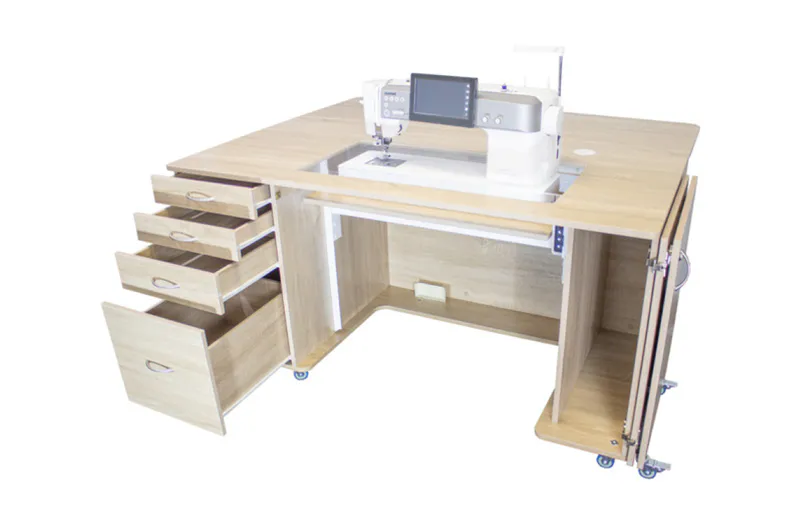 Designed for larger machines, serious sewists, and those who want comfort, storage, and style in one beautifully crafted unit.