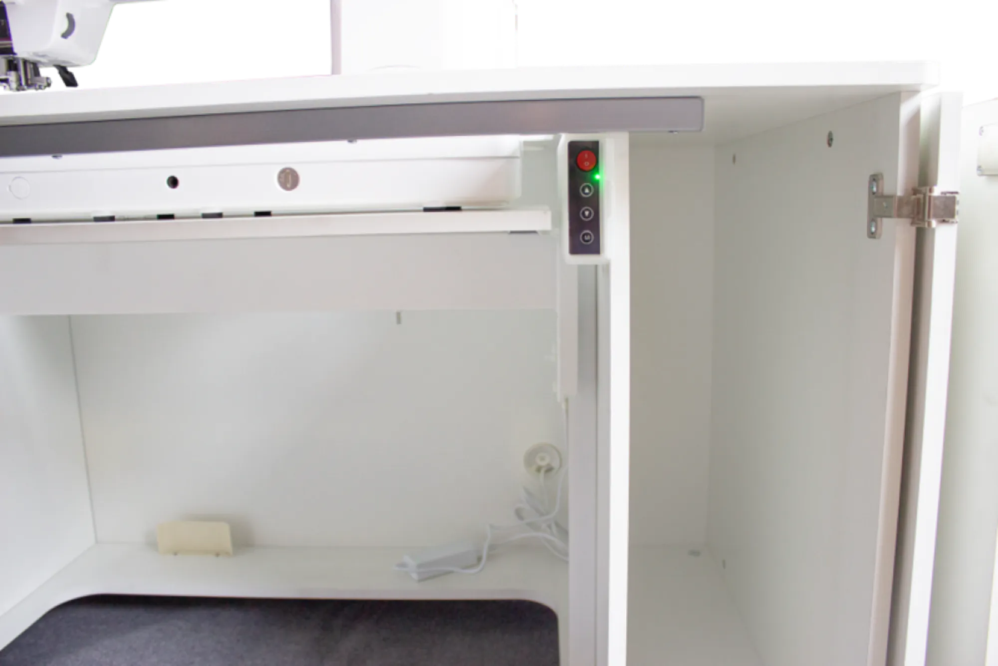 - Pre-settable to 3 different heights for ergonomic sewing or multi-machine use