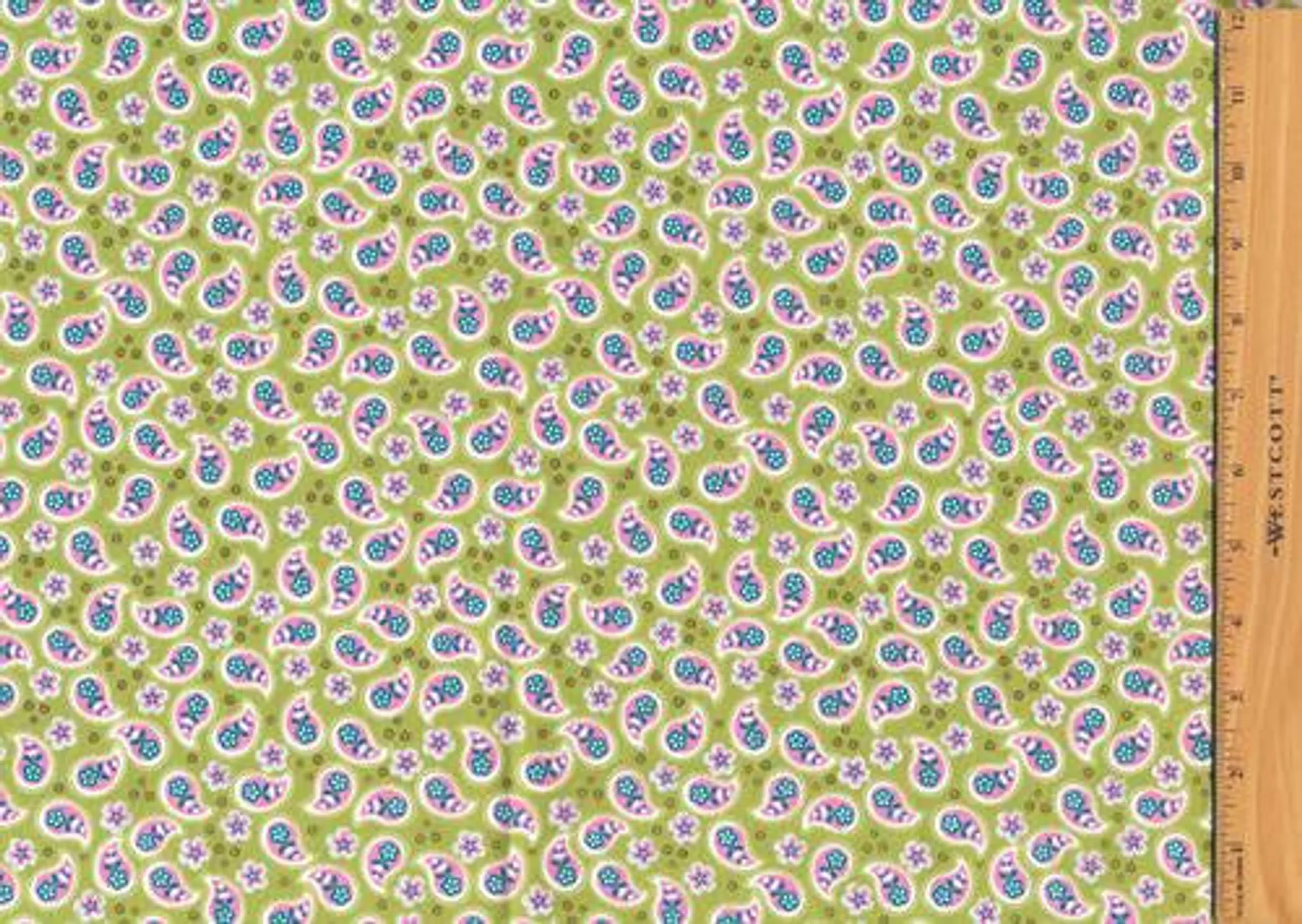 Lime Green fabric with Pink Paisley pattern