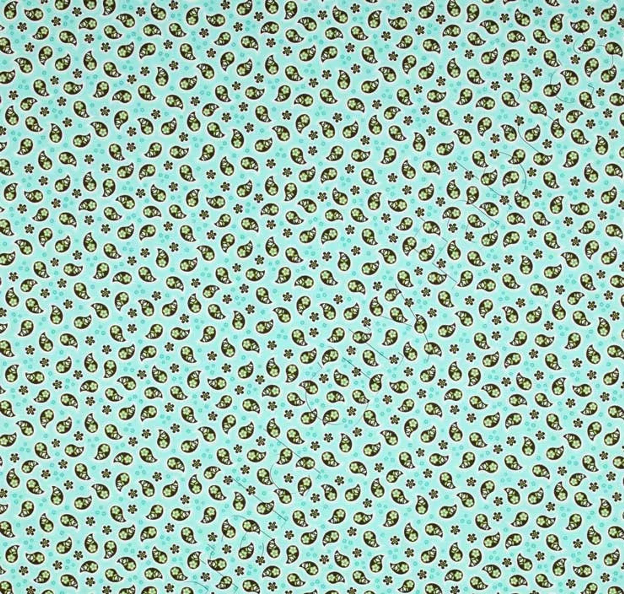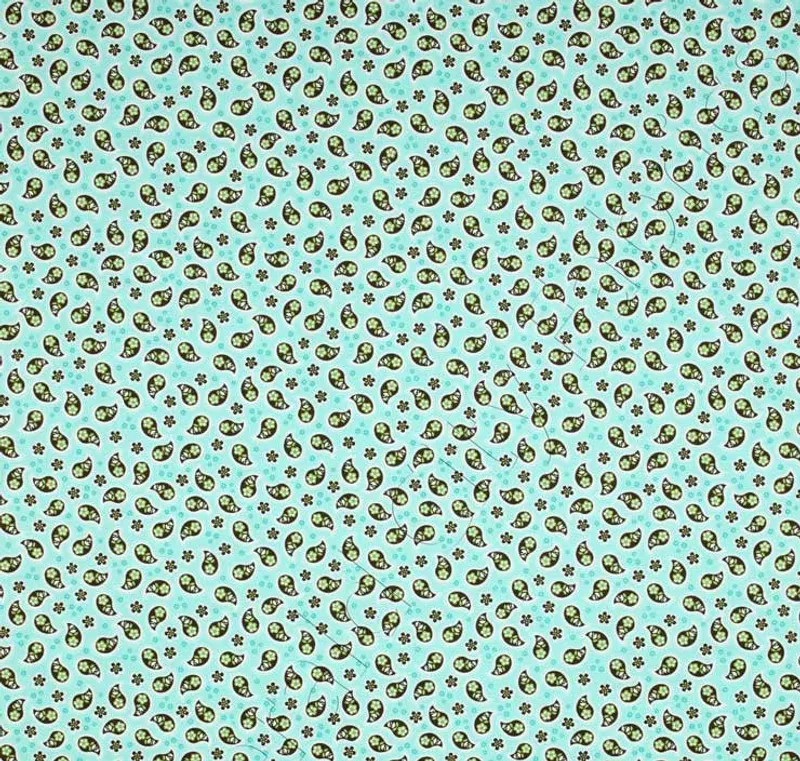 Aqua fabric with Brown Paisley pattern