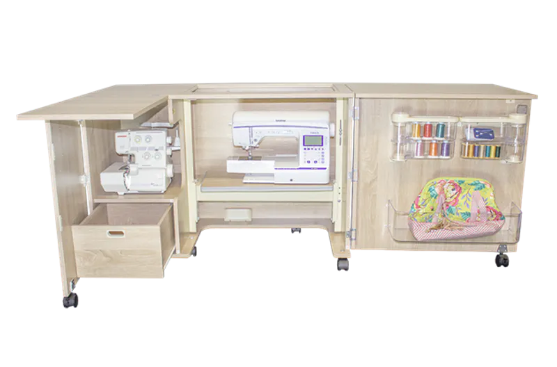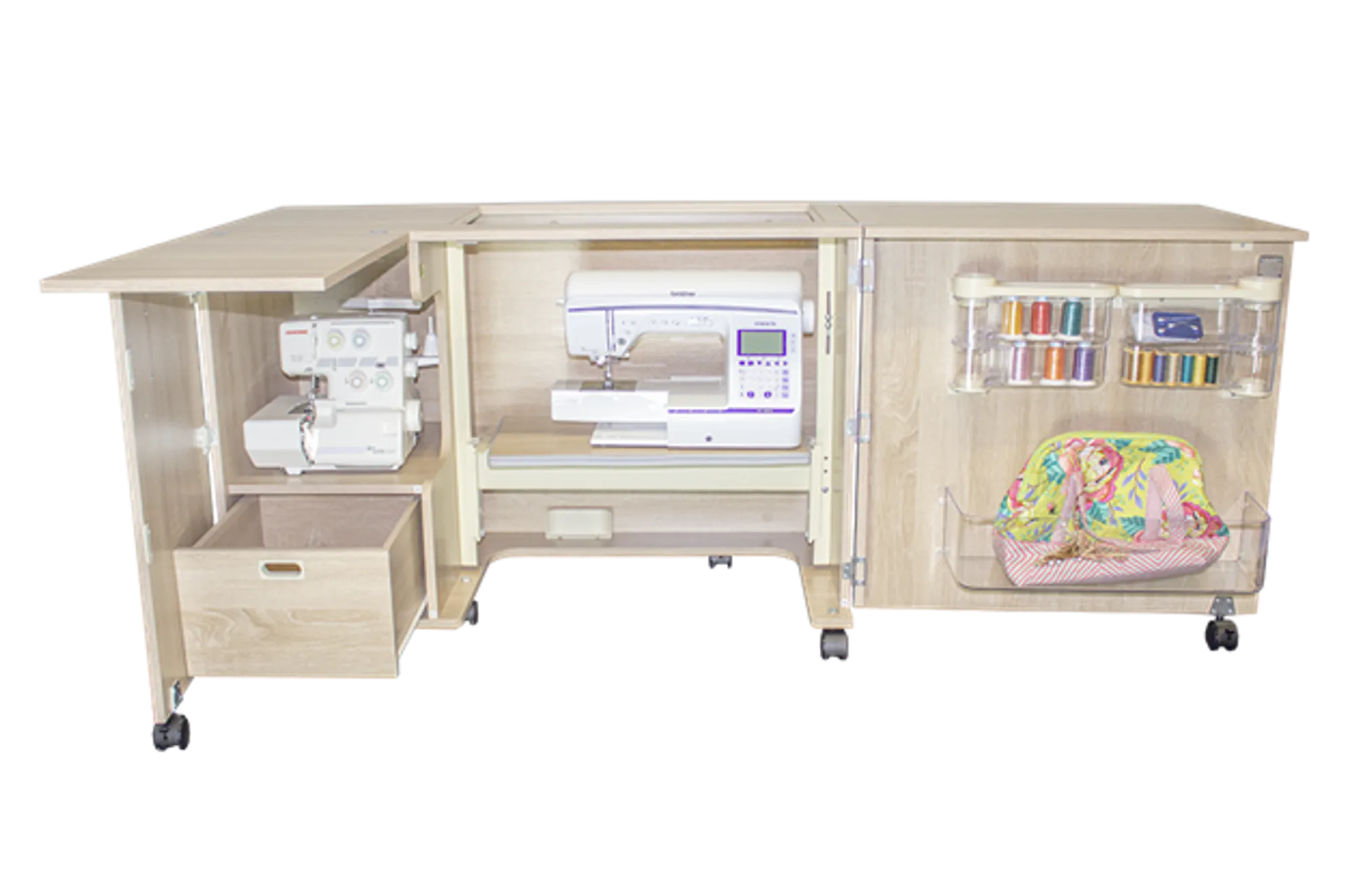 With room to store both sewing machine and overlocker you can spread out whenever you want to and enjoy the Kensington’s large work surface for all your creative projects. With plenty of leg room for added comfort and everything you need at your fingertips, your sewing days will be more enjoyable than ever.