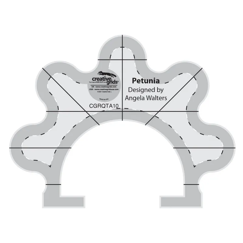This Machine Quilting Tool is pretty as a flower! Designed by machine quilting teacher and author, Angela Walters, Petunia is the perfect tool for creating curvy flower shapes, perfect circles and more. You can quilt along the outside edge to create stunning floral shapes, or quilt along the inside edge for beautiful circles and arcs. You can even combine the two to create even more designs for your quilt top! To learn more, view a video demonstration.