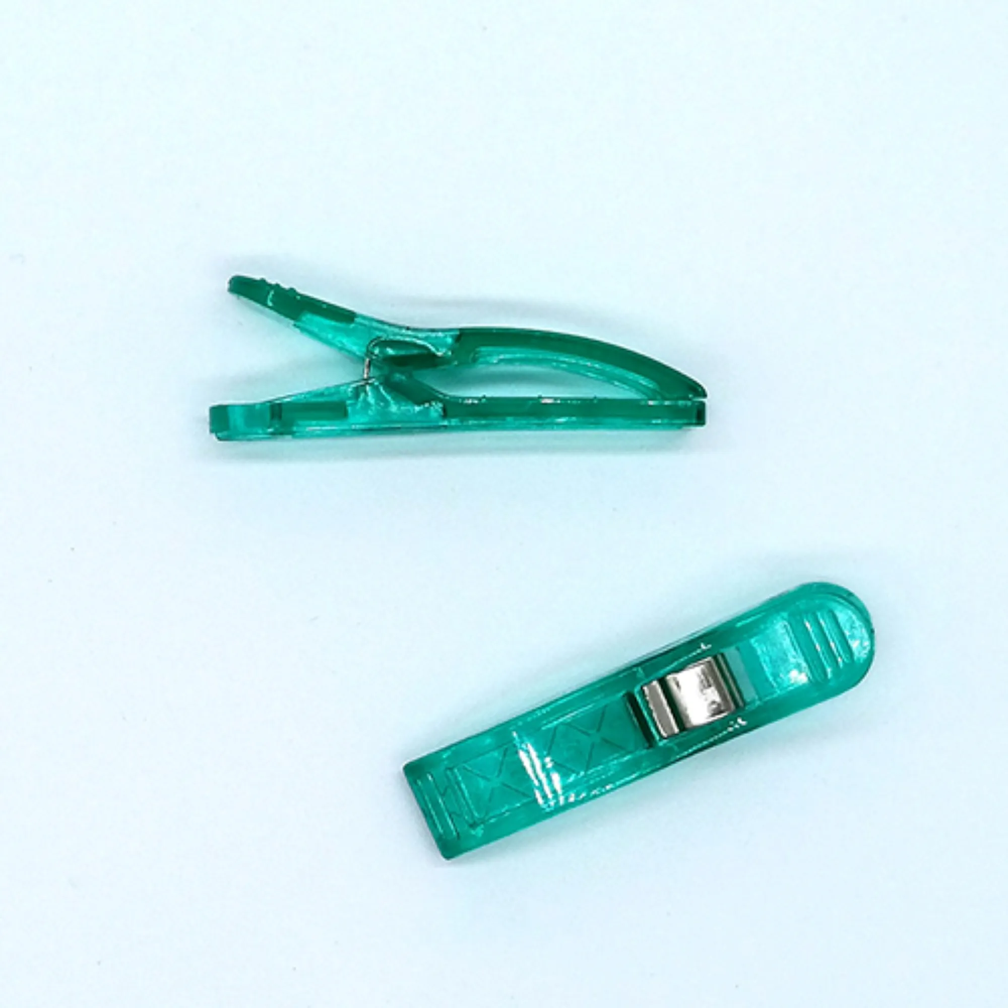 Excellent quality spring loaded clips to hold fabrics quickly, easily and firmly. Quicker alternative than pins especially when working with thick quilts and heavier weighted fabrics. Perfect for holding layers eg: quilts, piping, bias strips etc. Semi transparent to allow them to be seen against fabric colours. Also great for use with overlockers/ sergers.