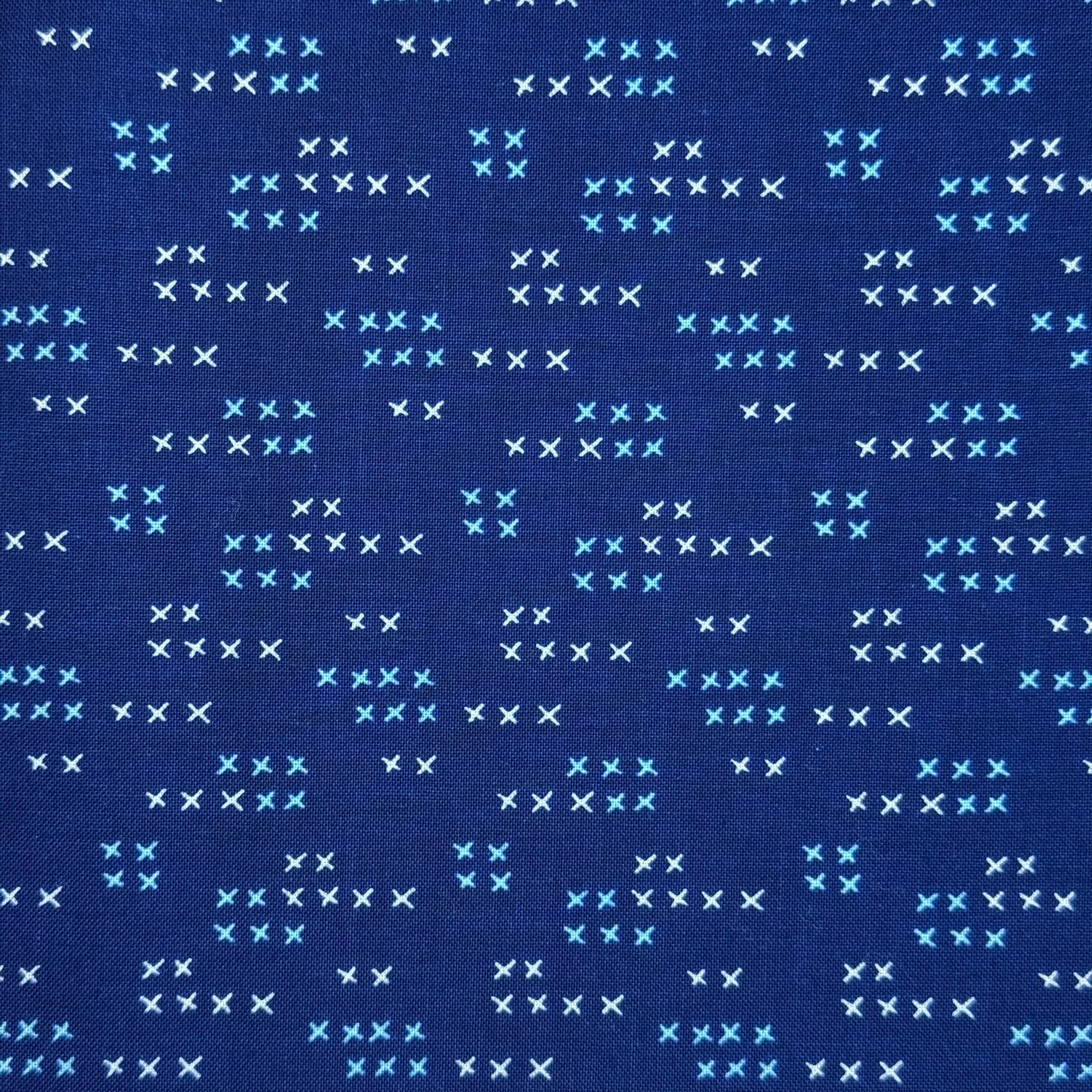 Navy fabric with blue and white crosses