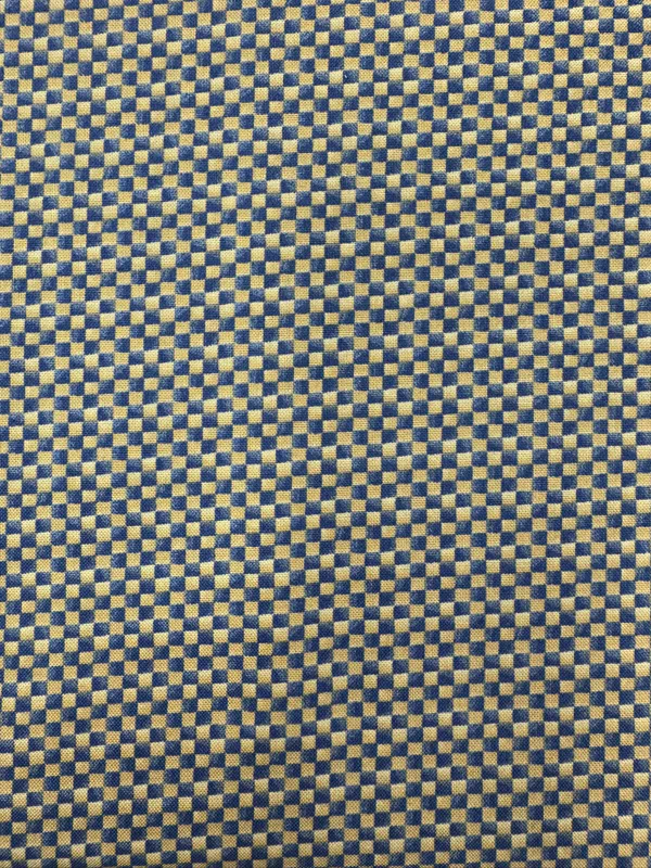 Tan base fabric with mini Blue check pattern