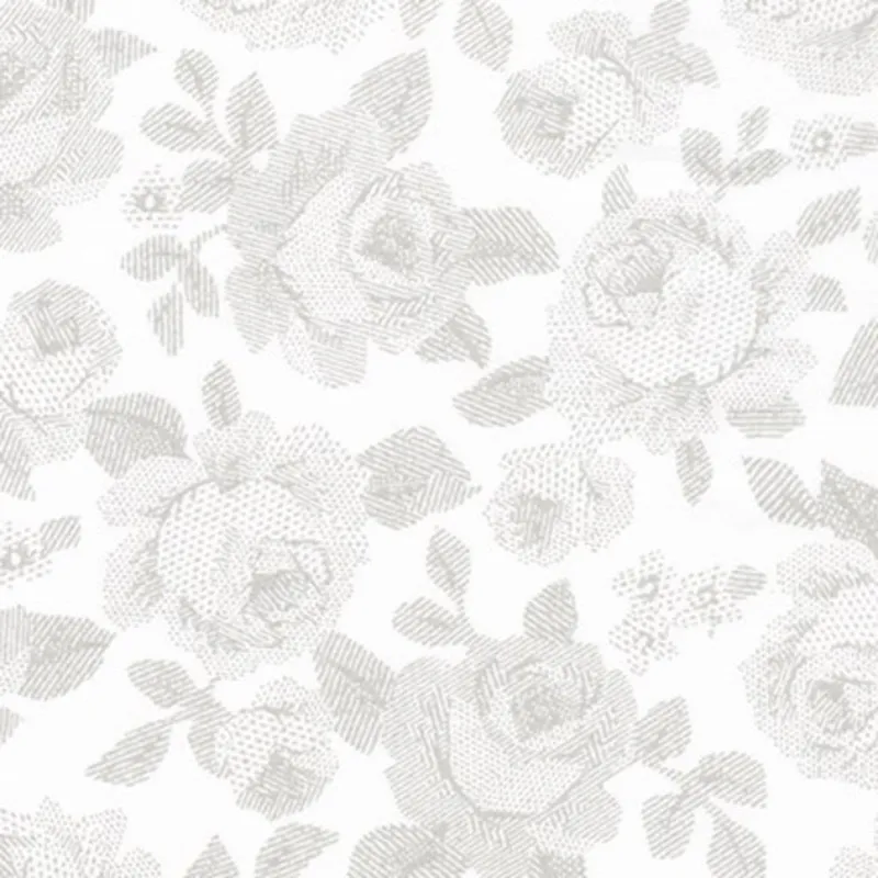 White Fabric with grey floral pattern