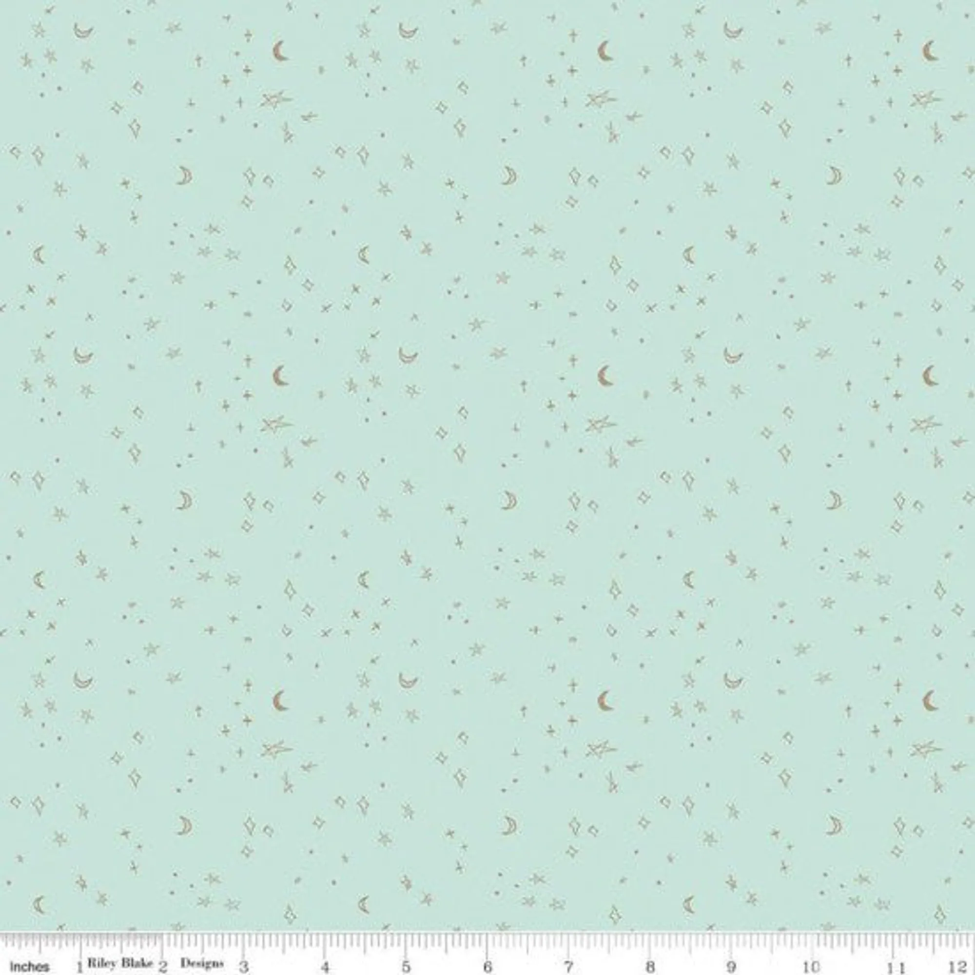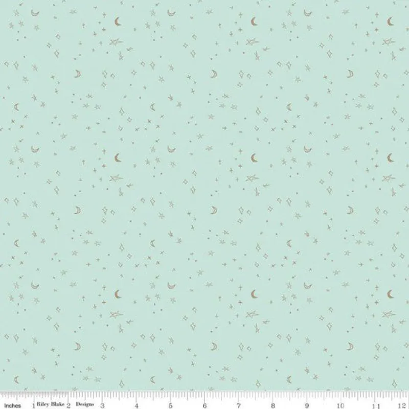 Mint Fabric with Rose Gold stars and moons mini print