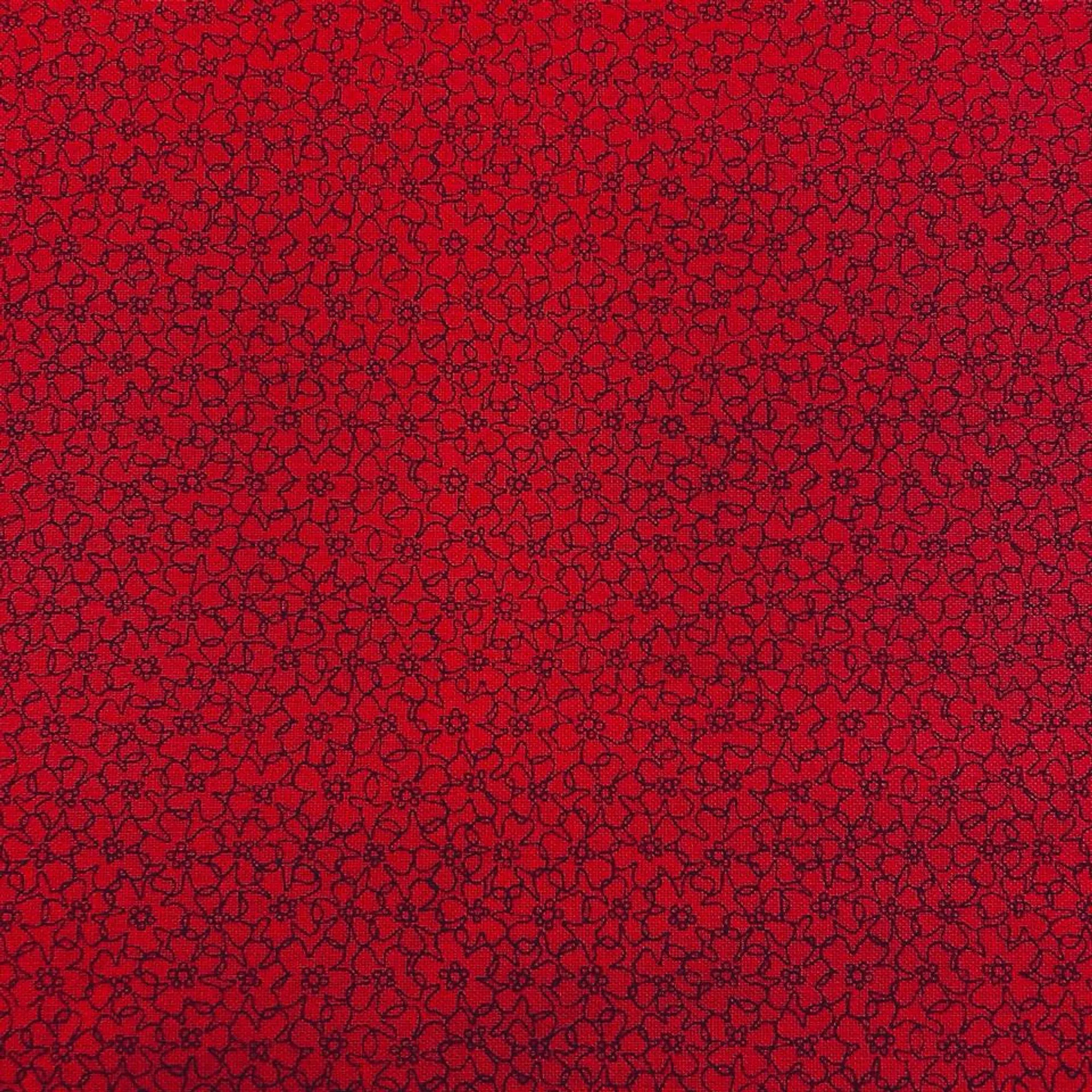 Black flower outlines on red background