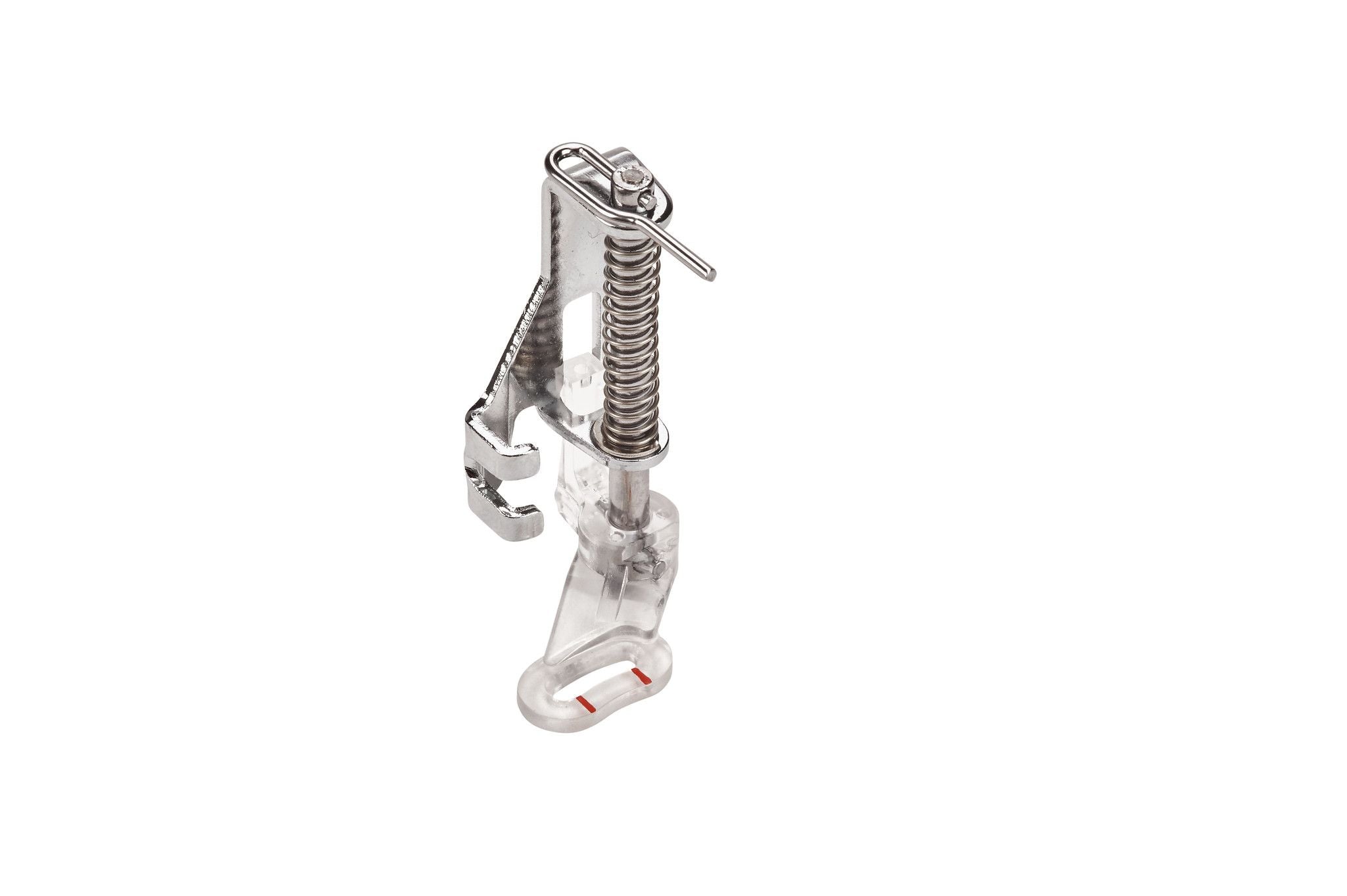 This foot is a true specialist for free motion sewing and it is best suitable to darn holes and worn areas. Used together with an embroidery hoop, the darning process can be simplified as the hoop stabilizes the fabric. The foot can also be used to create attractive embellishing such as laces or monograms.