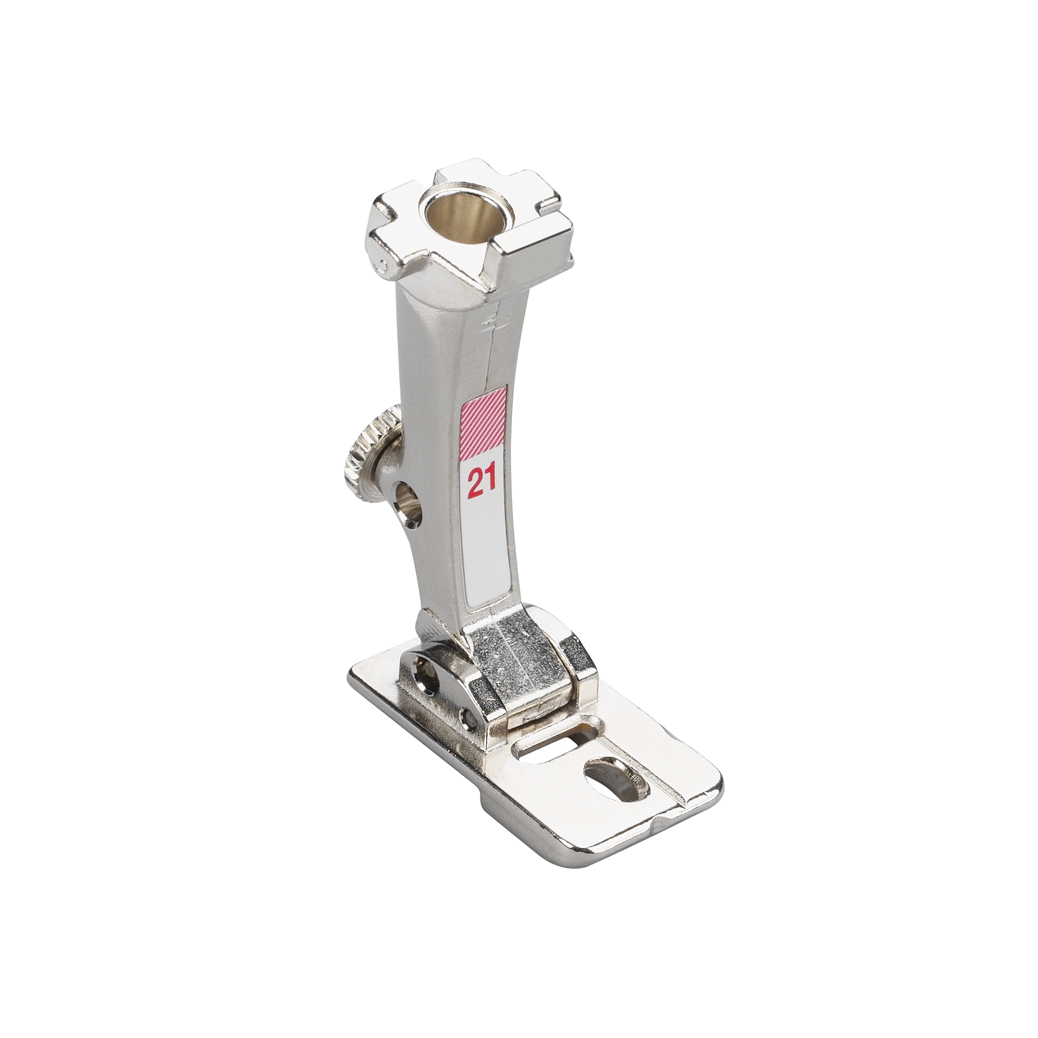 This foot lets you guide narrow ribbons and cords with precision whilst couching. The bevelled cutout can accommodate cords and narrow ribbons up to 3mm thick, which can be couched using a utility or decorative stitch. .