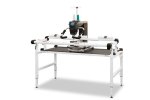 The innovative clamps hold the quilted section to maximize quiltable space, while the front rail with a ratchet system fine-tunes the tension, preventing puckers or wrinkles. Side leaders accommodate very small quilts, and the easy-access take-up rail allows for effortless machine changes. This setup enables comfortable quilting whether you prefer to sit or stand.
