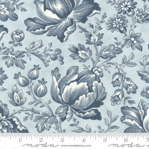 Moda - 3 Sisters - Large Flowers Grey Blue