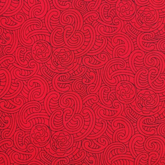 Red Fabric with self coloured koru design