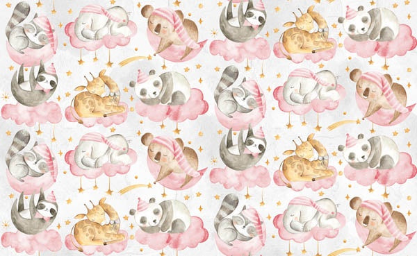 White background with Pink Sleeping animals pattern