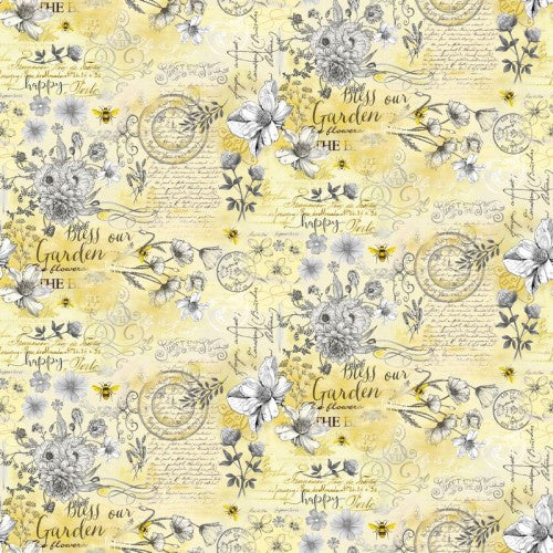 > Timeless Treasures Old Fashioned Text Fabric - HONEY