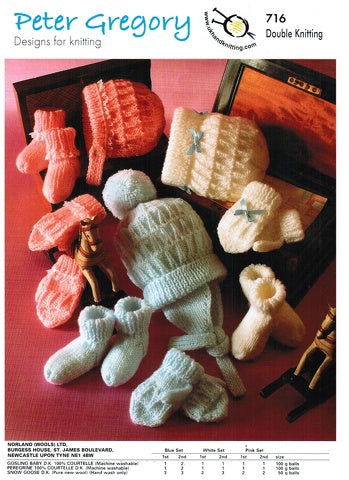 This Children's double knitting pattern 716 by Peter Gregory will guide you in creating Hat and Slippers